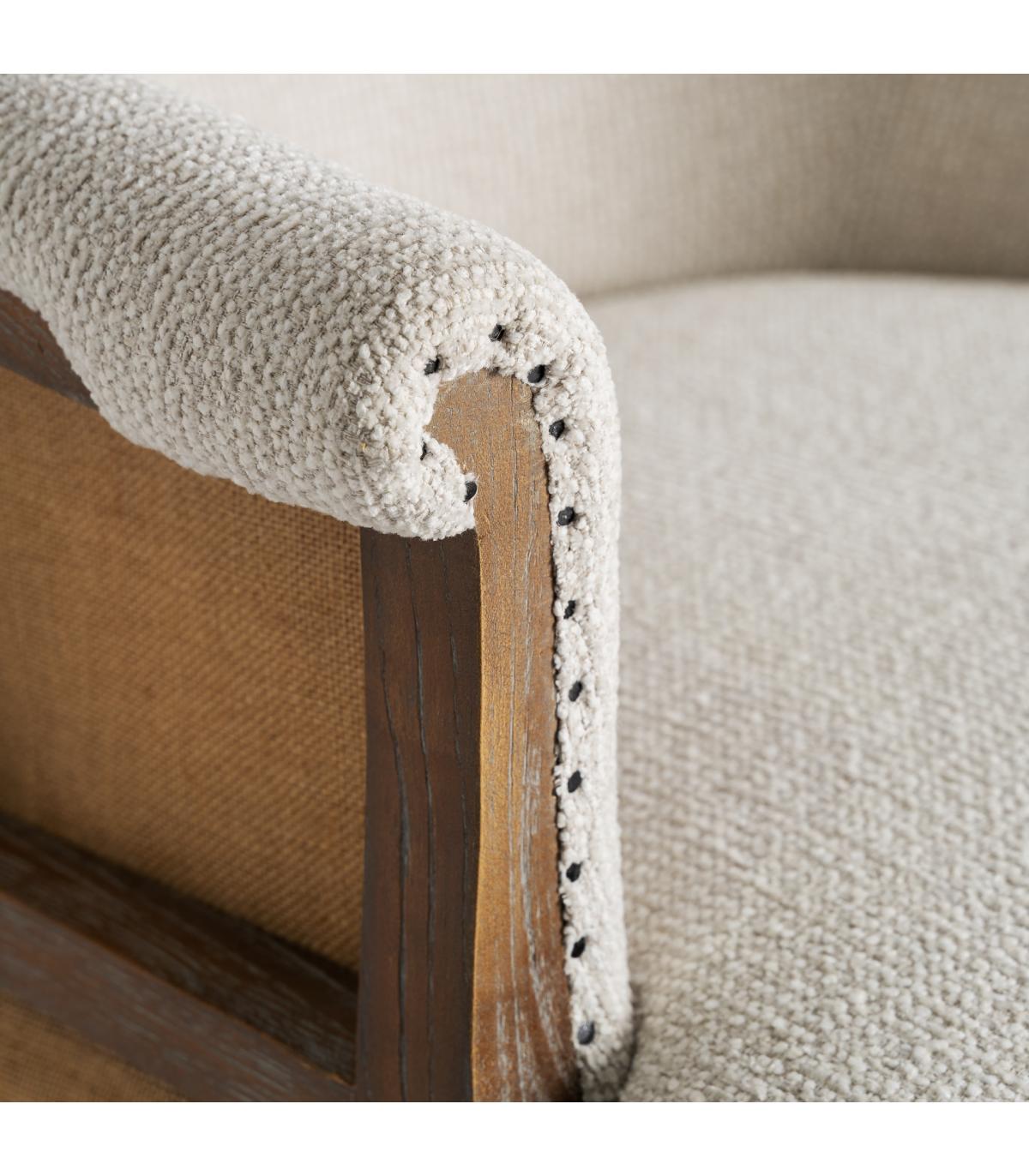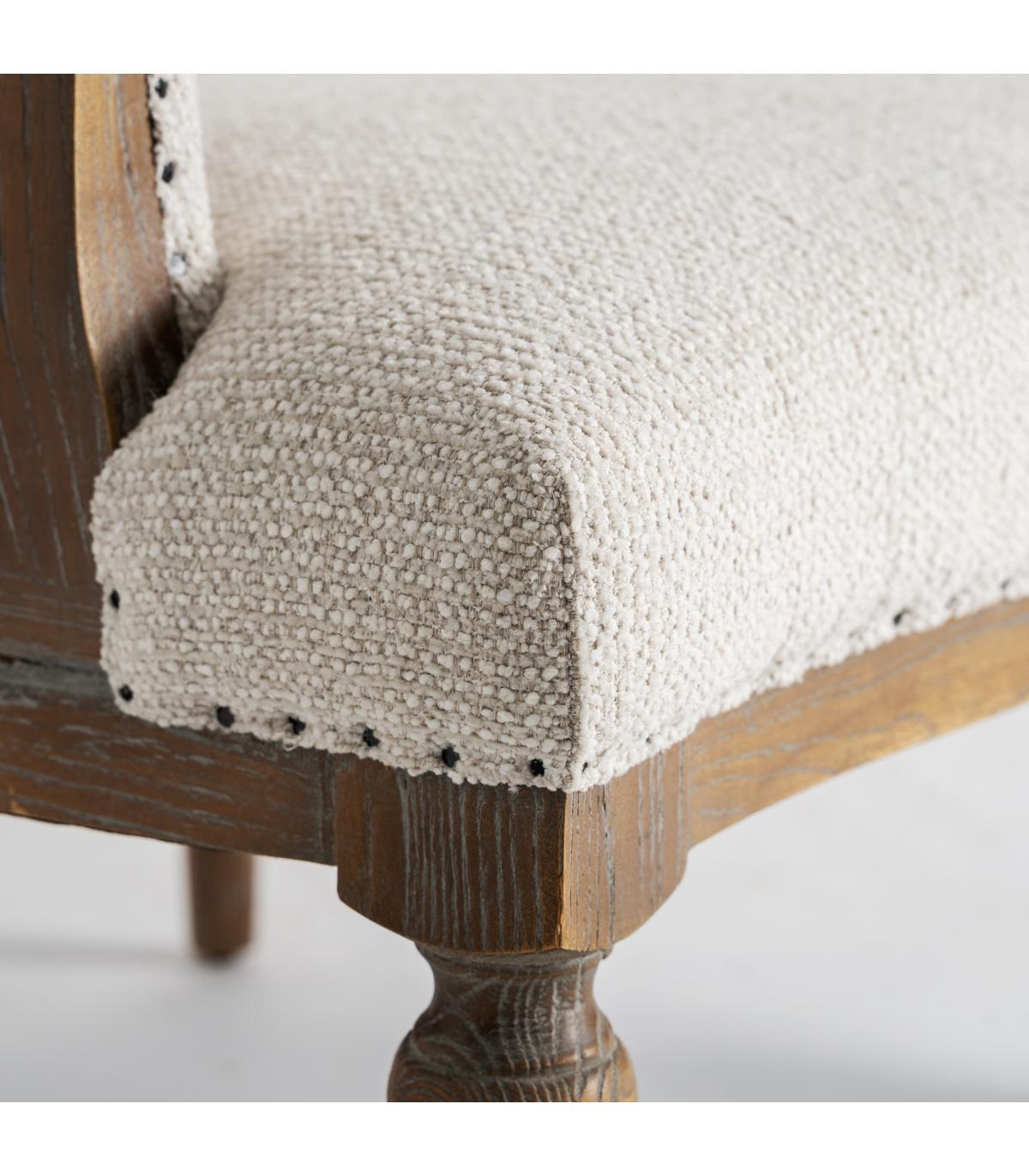 Sillón fabricado en madera de fresno en color marrón combinado con loneta en color beige y yute.