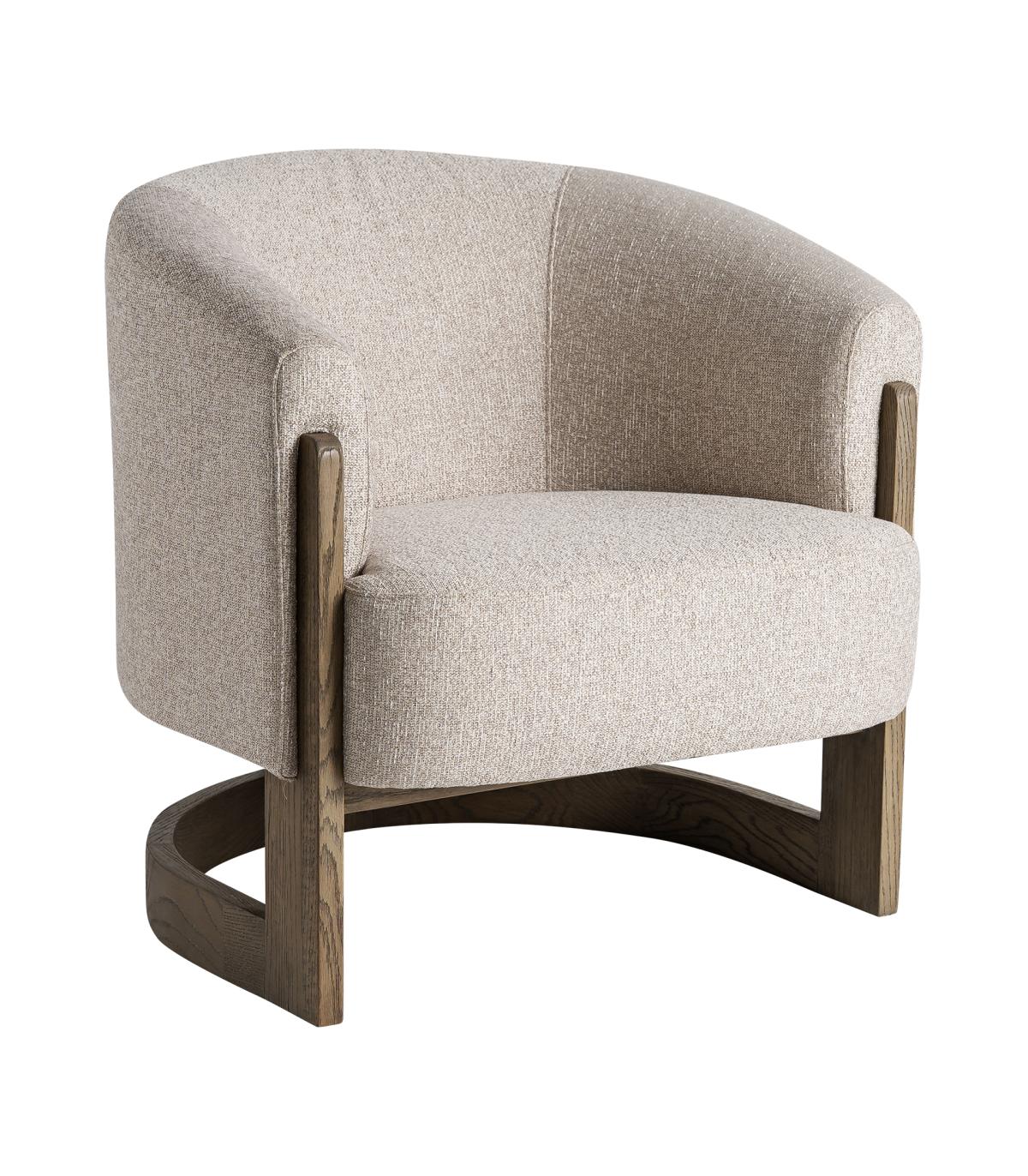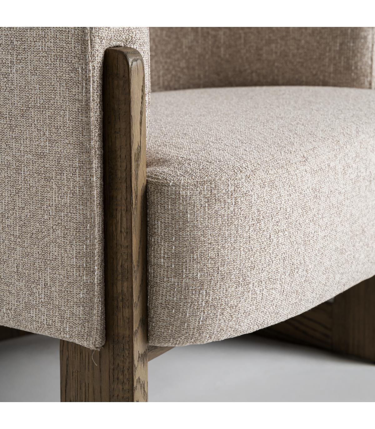 Sillón fabricado en madera de fresno en color marrón combinado con poliéster en color topo.