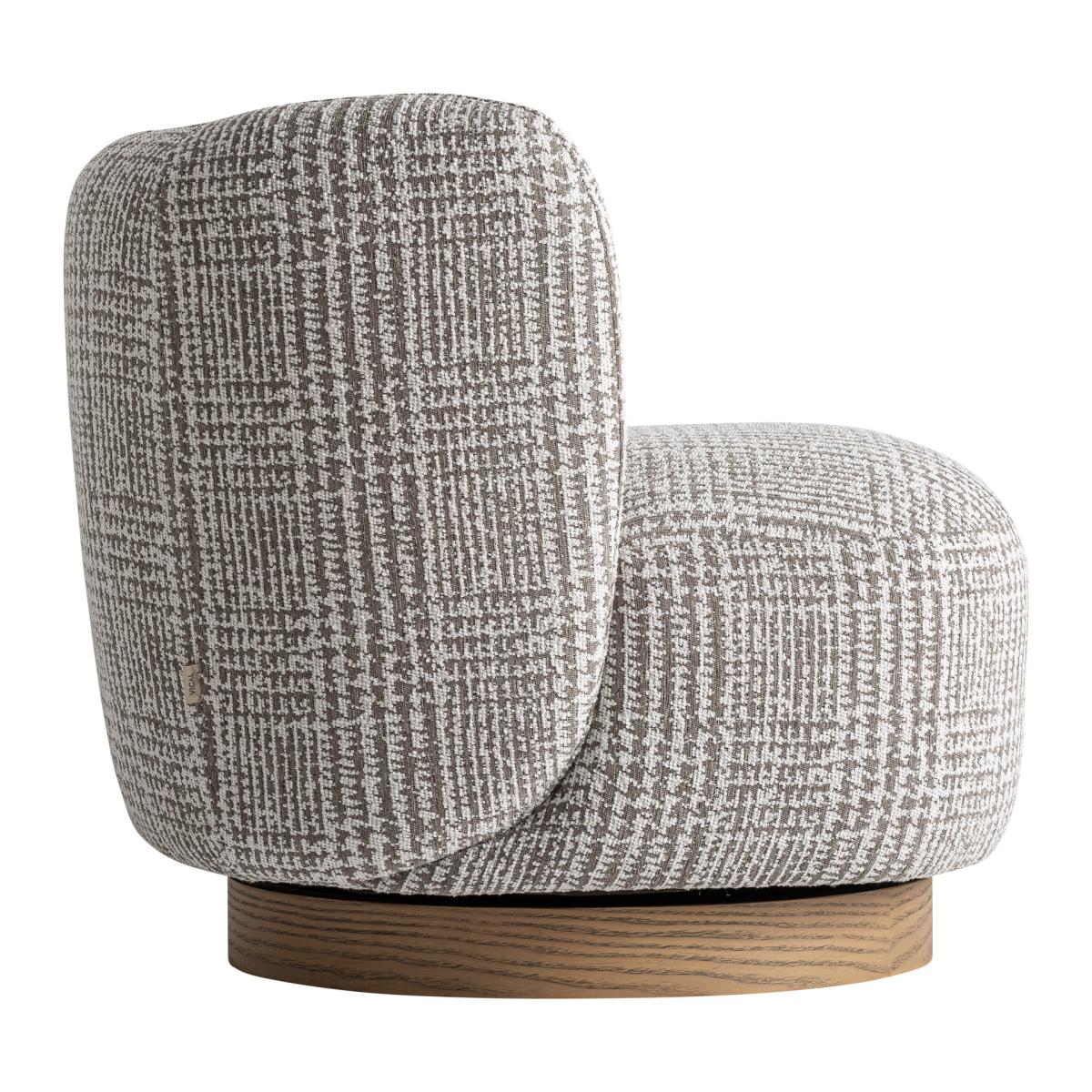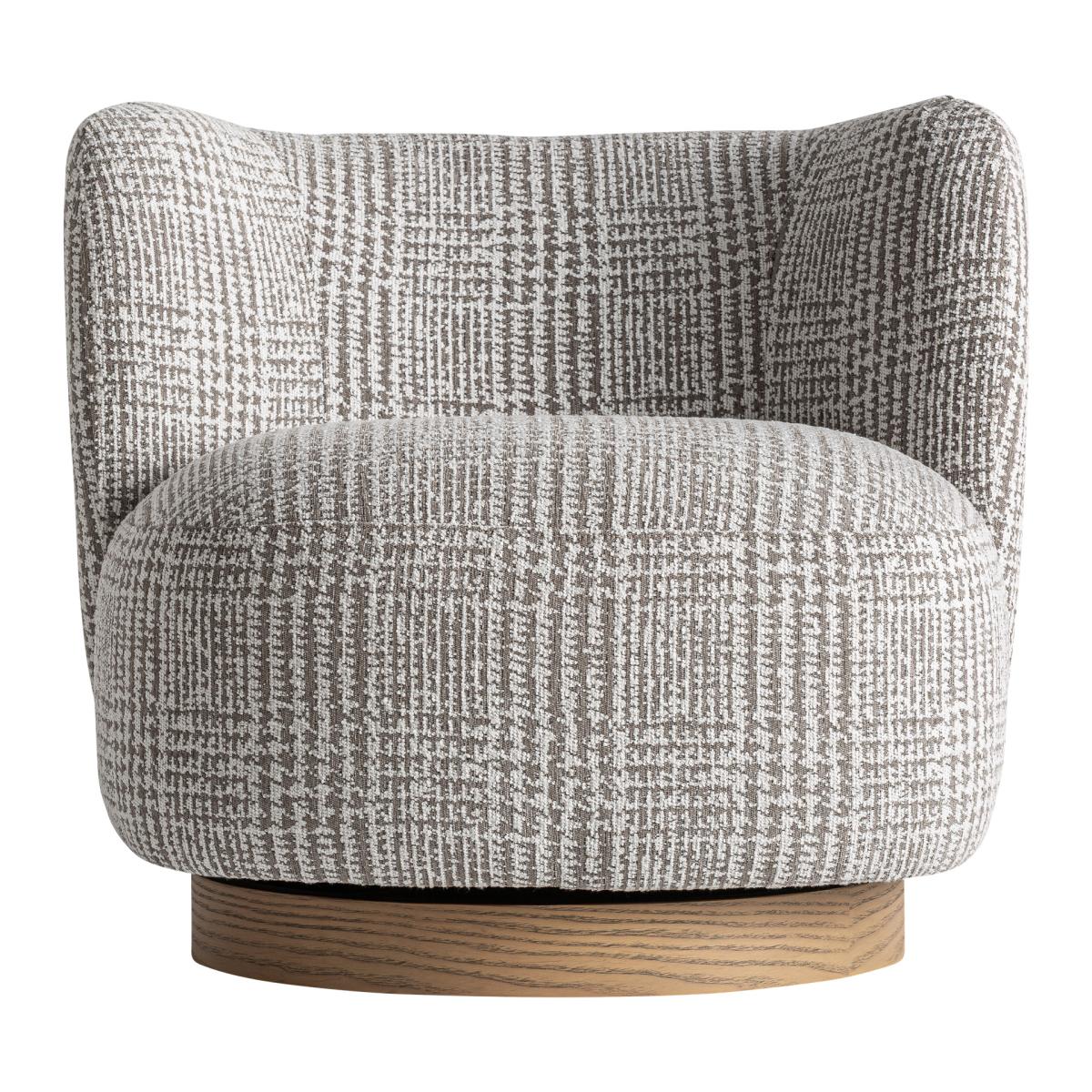 Sillón fabricado en poliéster en color verde con acabado jaspeado combinado con madera de pino en color marrón y espuma.