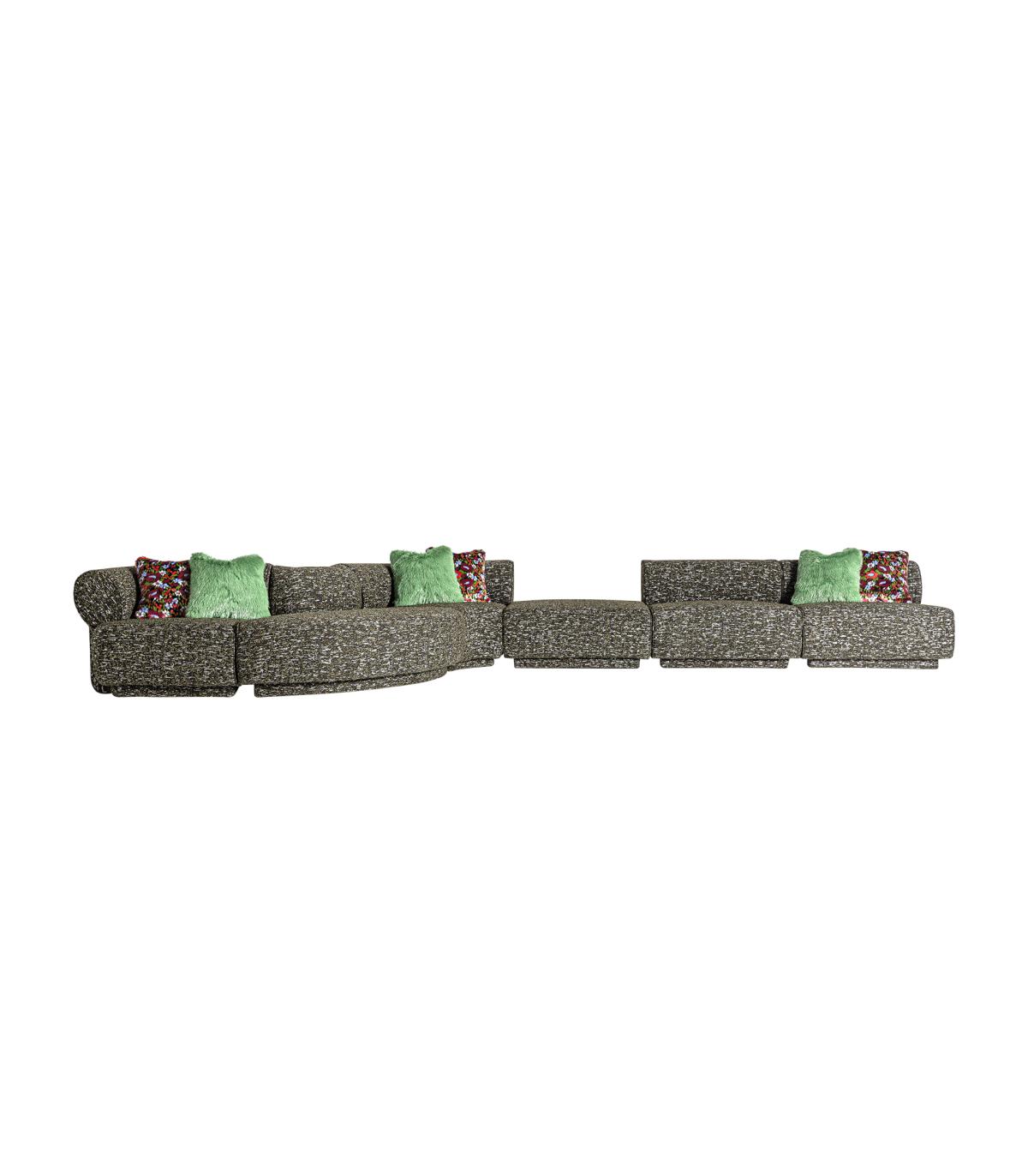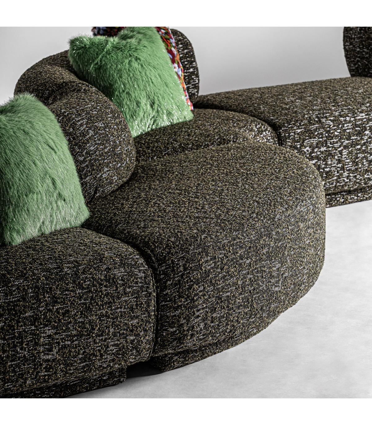 Módulo sofá central kozly de estilo contemporáneo fabricado en poliéster en color verde con acabado jaspeado combinado con madera de pino y madera contrachapada. Compatible con: 36117 36118 36116 36120.
