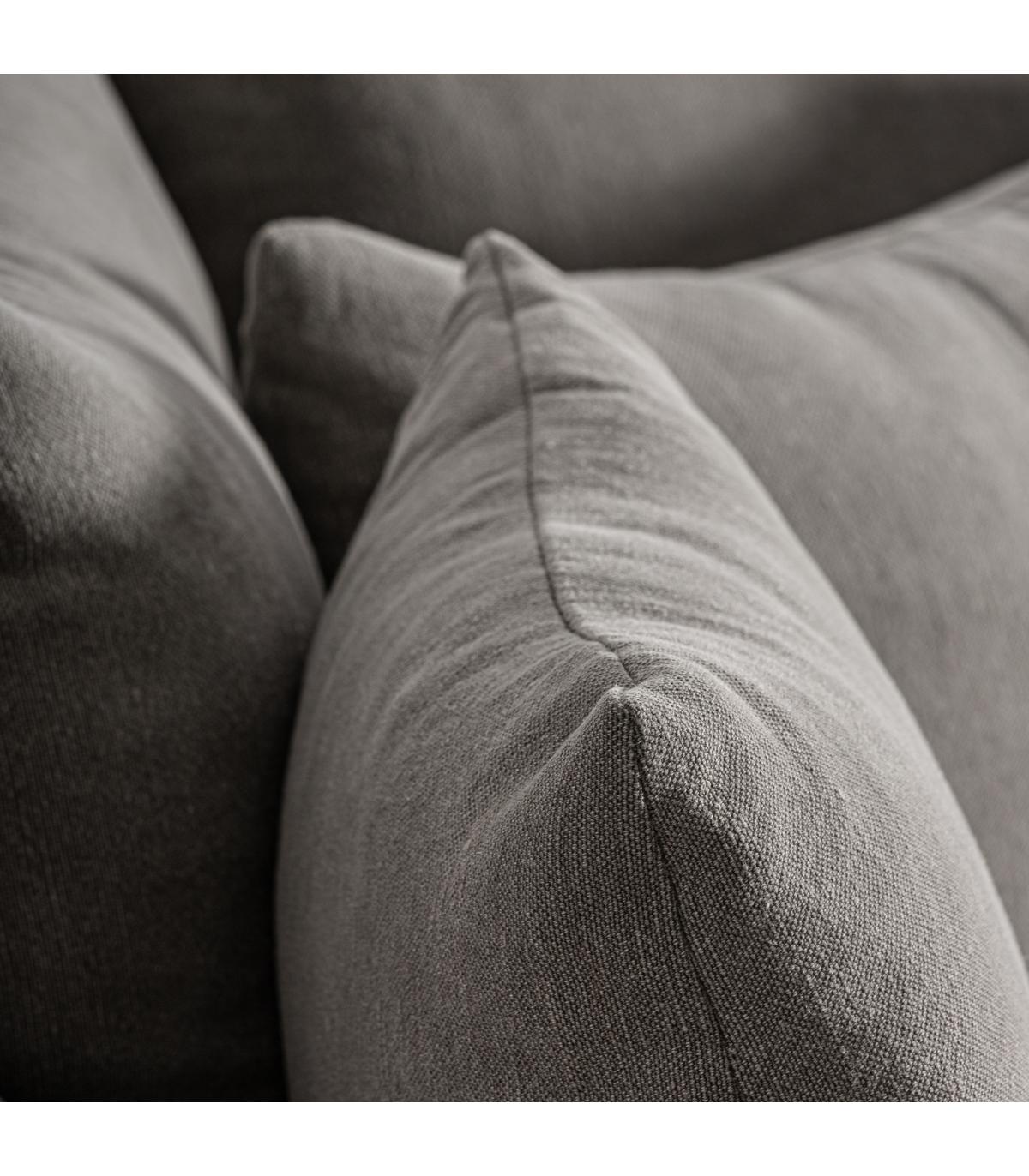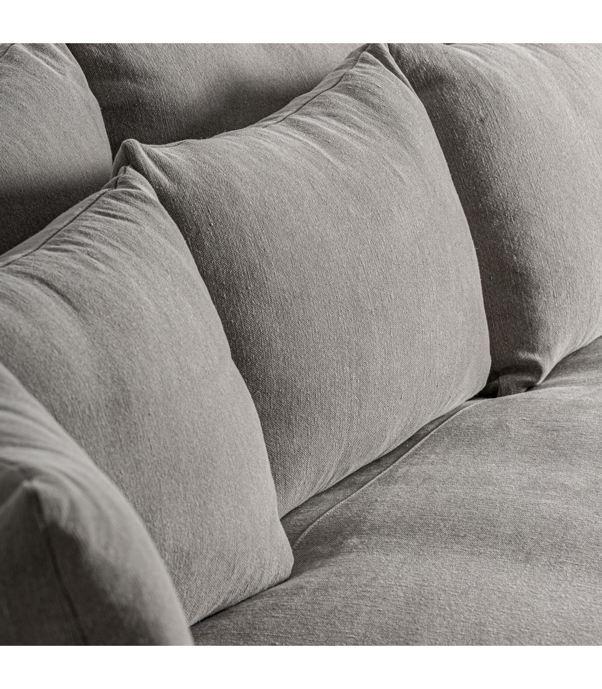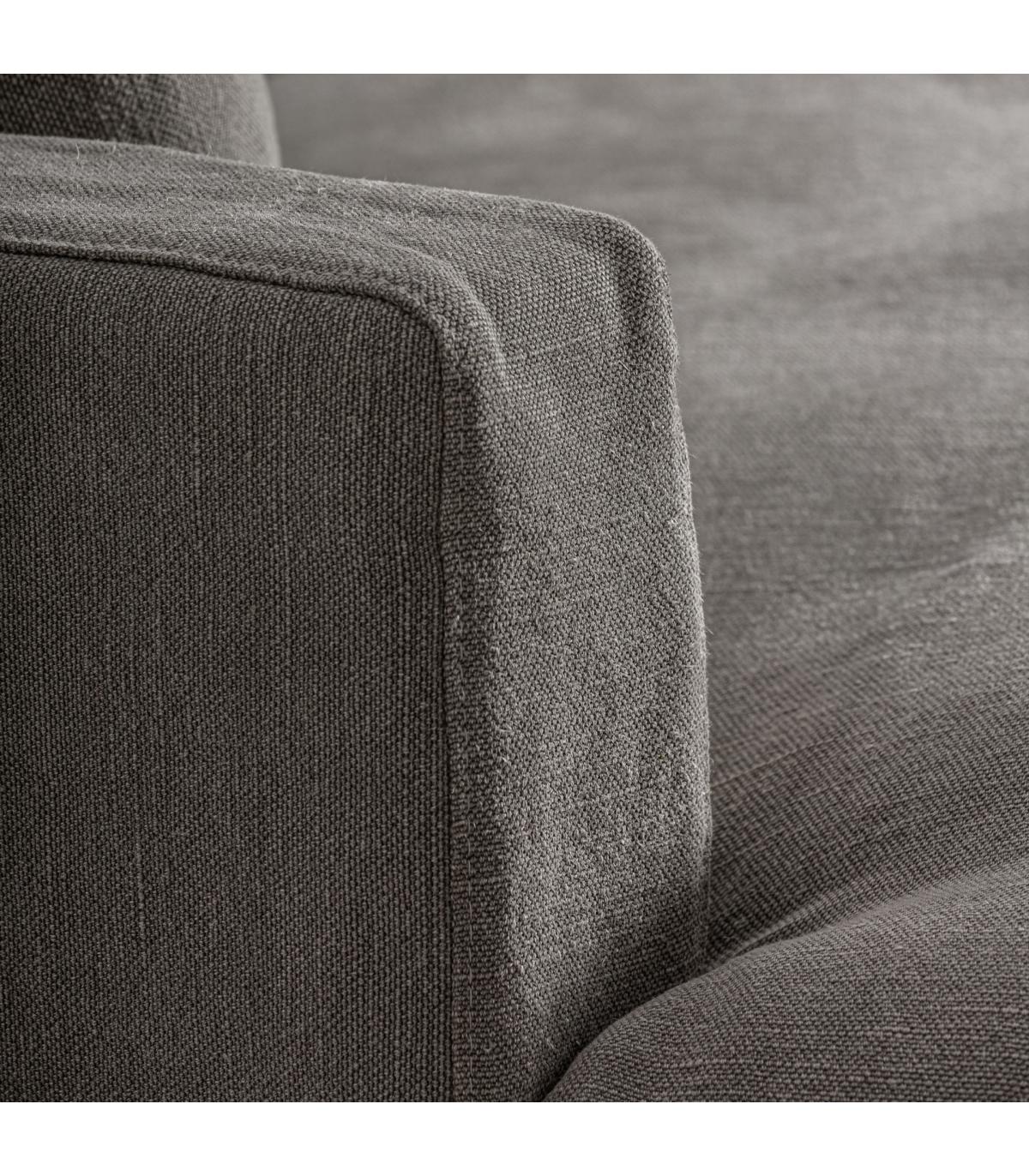 Sofá Corbun de estilo clásico fabricado en lino en color topo combinado con algodón y espuma. Producto desmontable desenfundable.