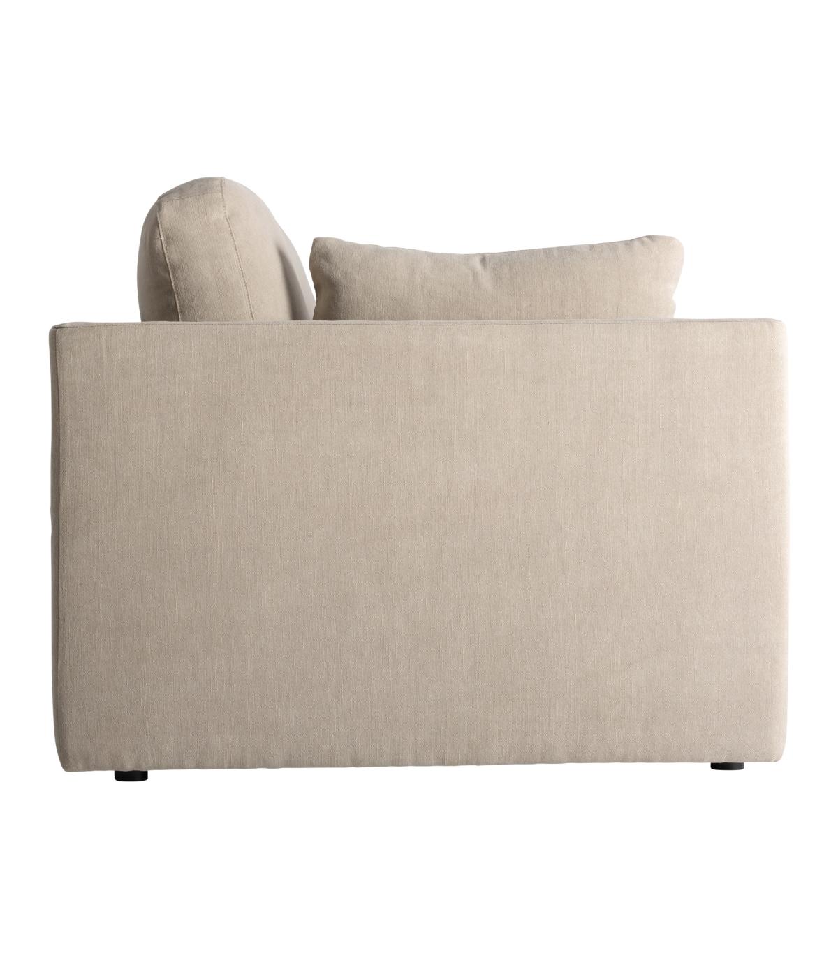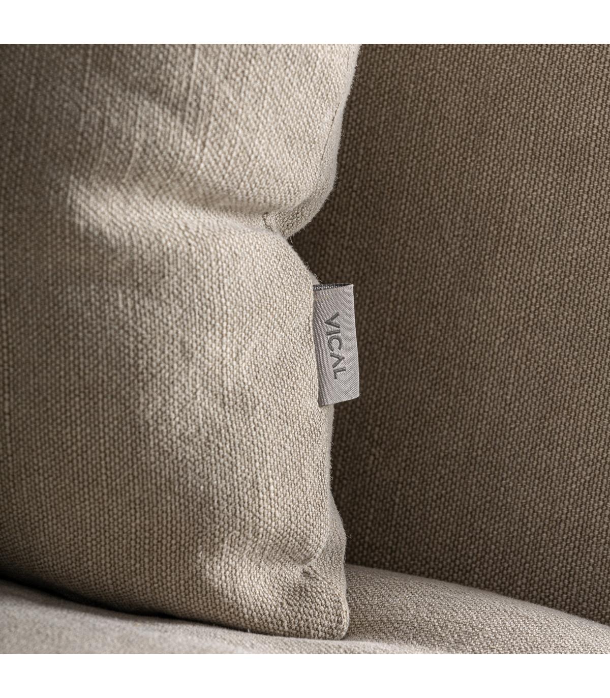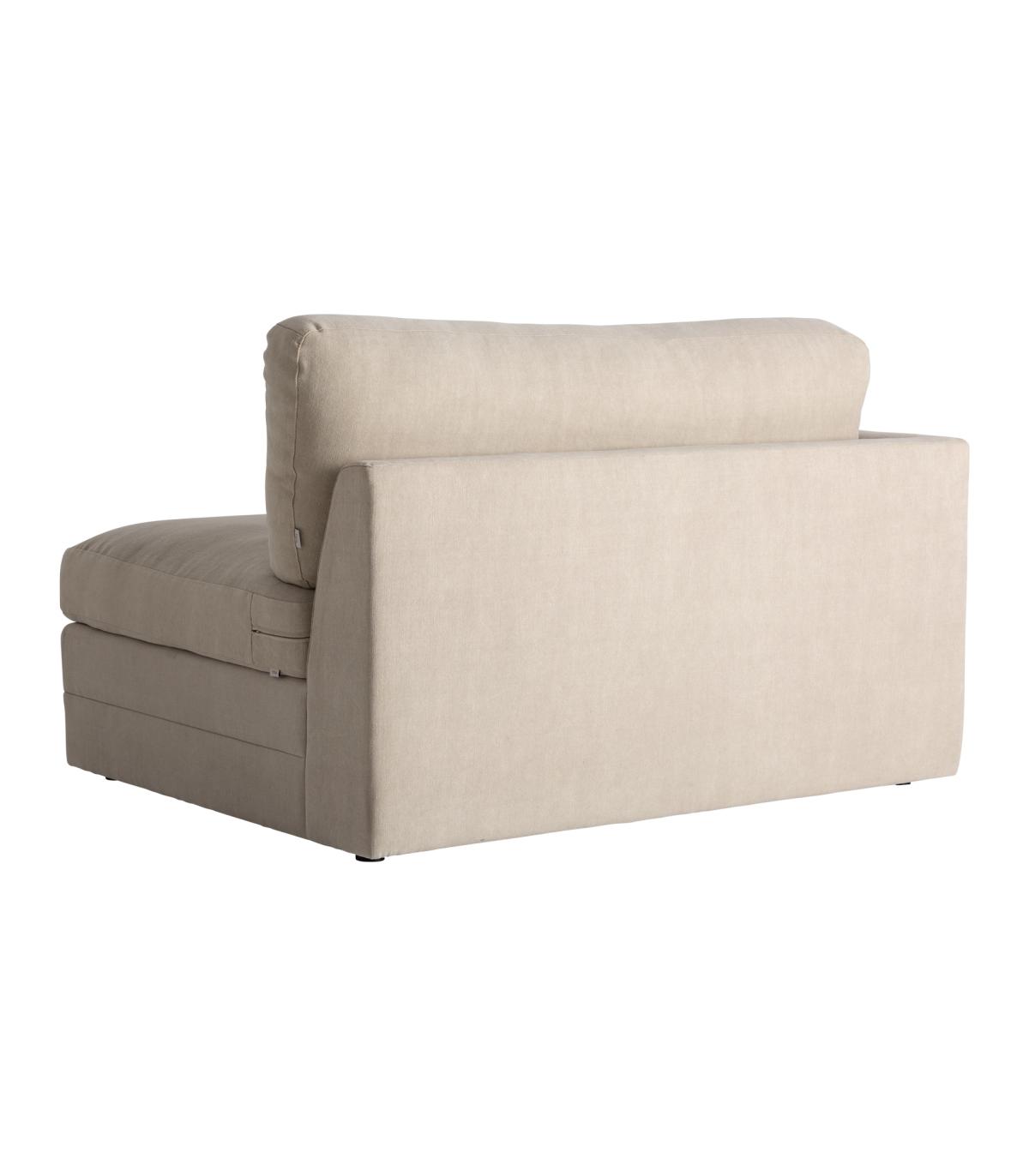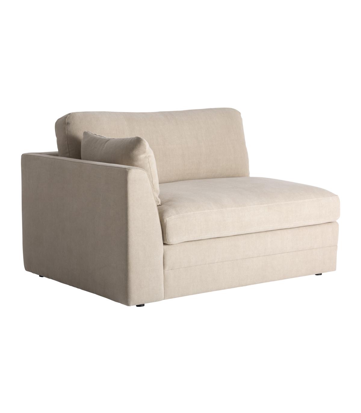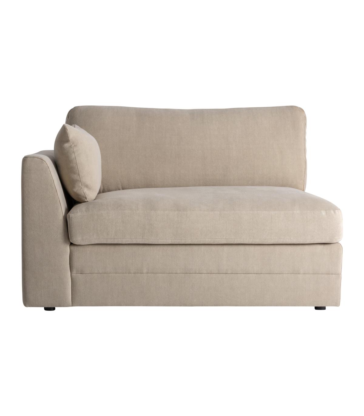 Módulo sofá esquinero fabricado en poliéster en color topo combinado con madera.