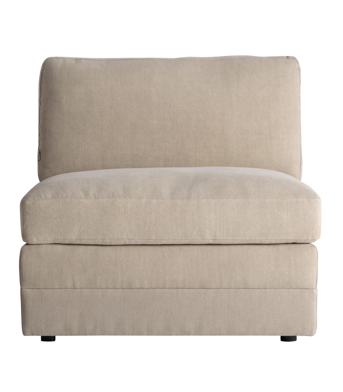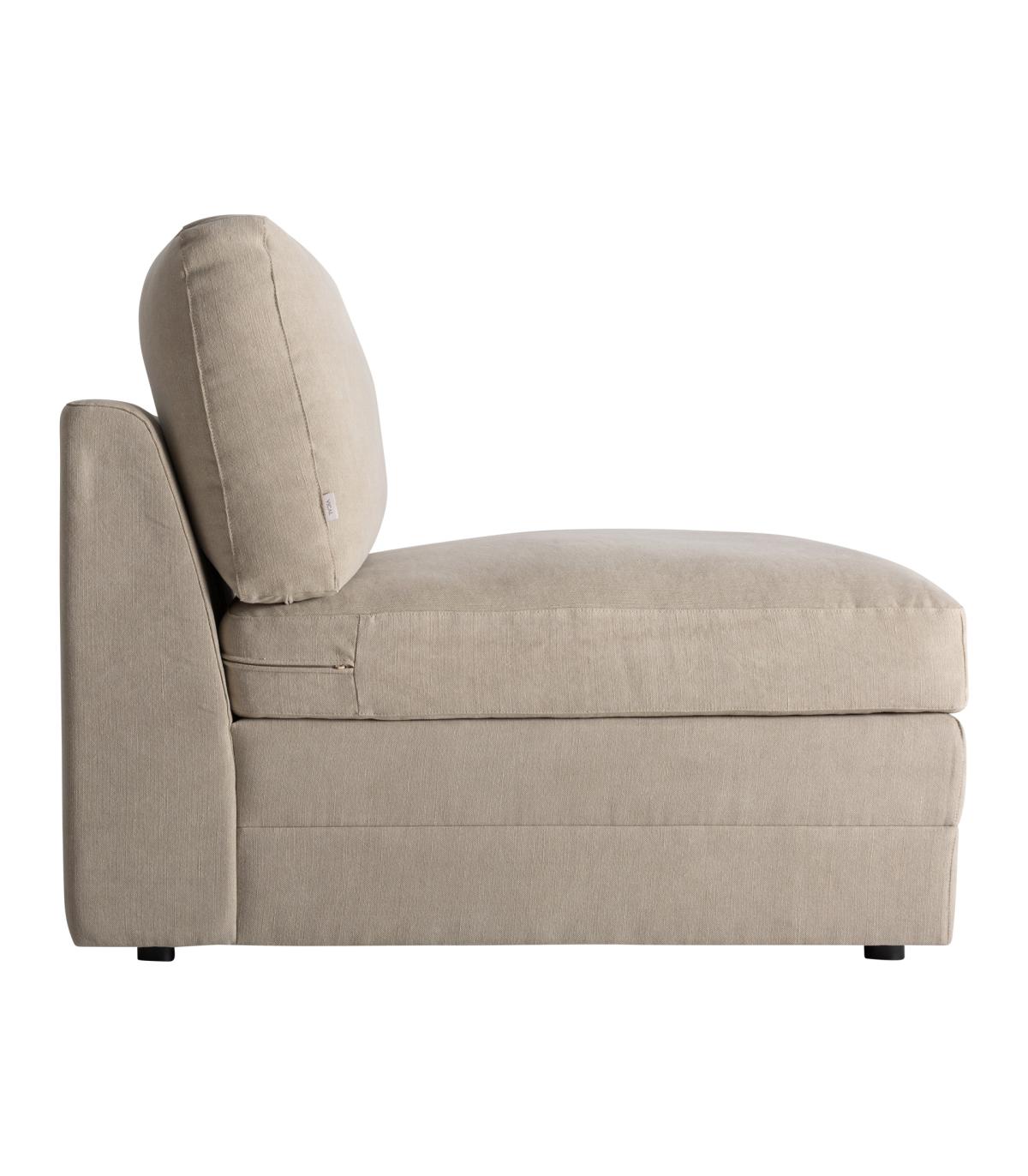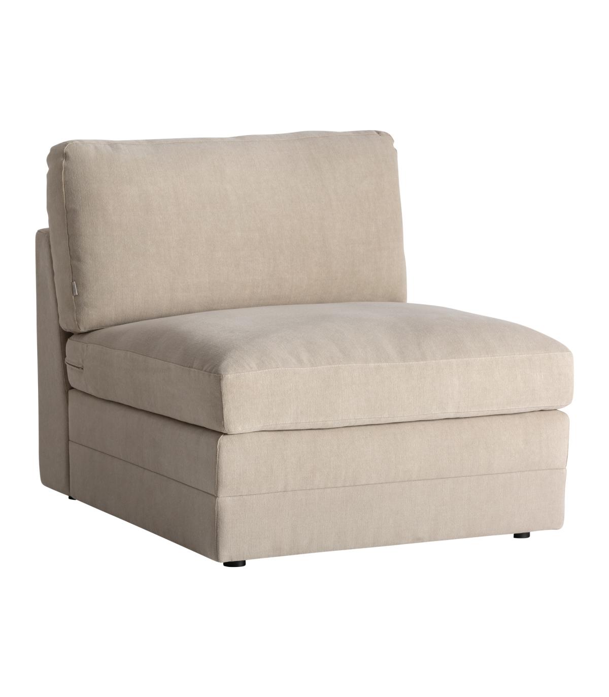 Módulo sofá central fabricado en poliéster en color topo combinado con madera.