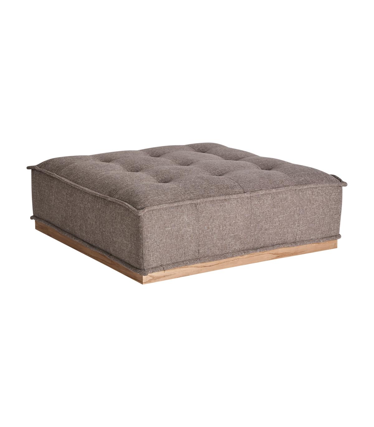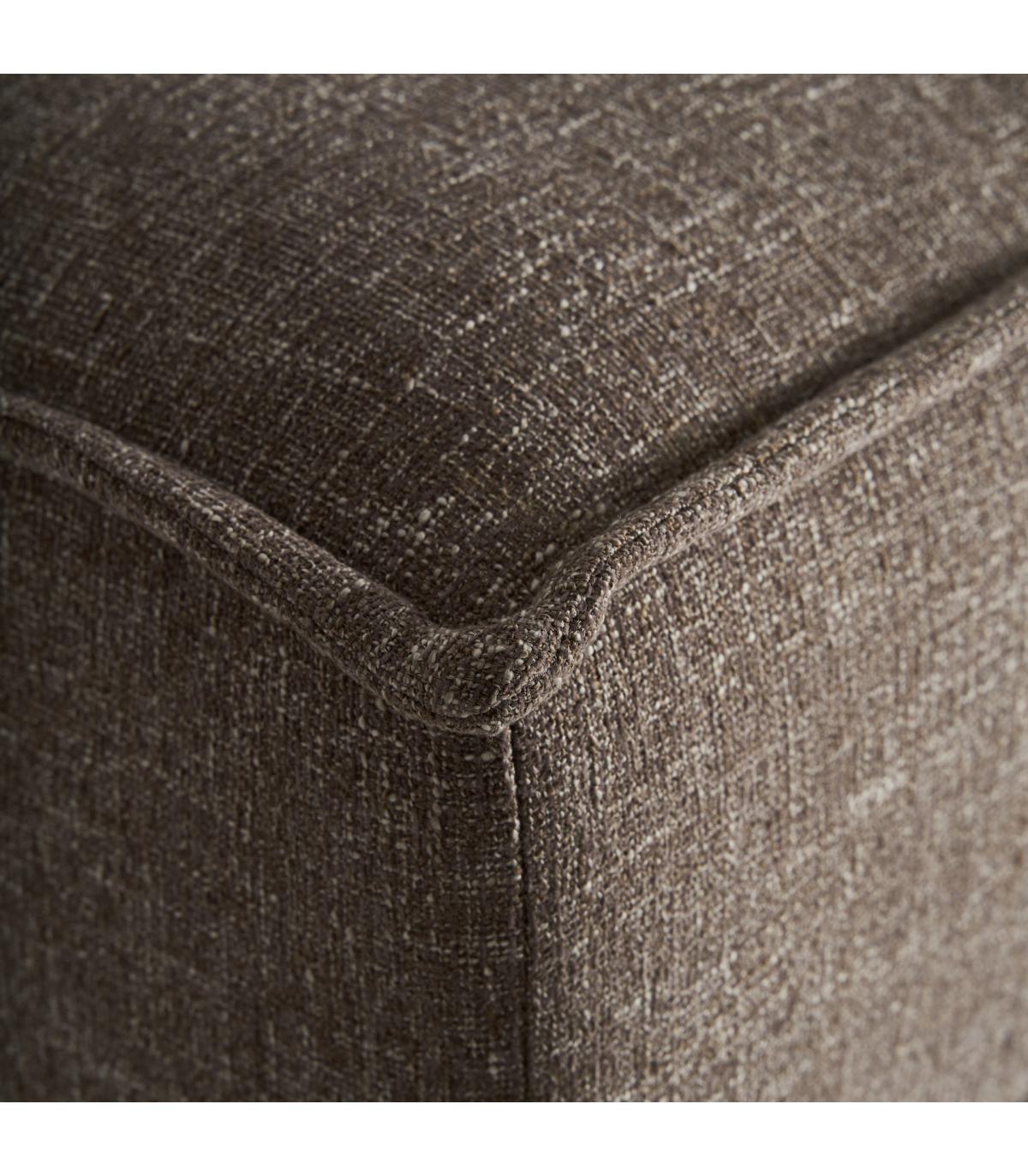 Puff Aspach de estilo contemporáneo fabricado en poliéster en color marrón con acabado jaspeado combinado con madera de pino en color marrón. Compatible con: 36359 58.