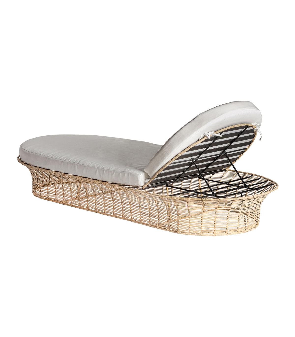 Tumbona Gerb de estilo boho fabricado en ratán en color marrón claro combinado con espuma.
