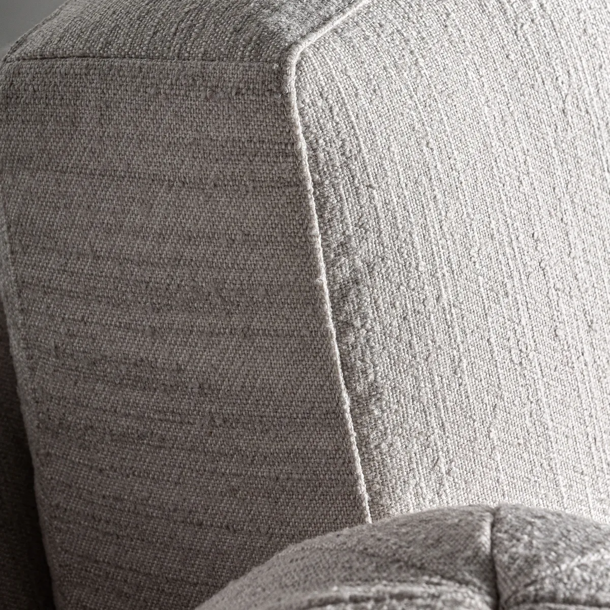 Sofá traun de estilo contemporáneo fabricado en madera de pino en color negro combinado con madera de caucho y poliéster en color blanco roto. Producto desmontable desenfundable.