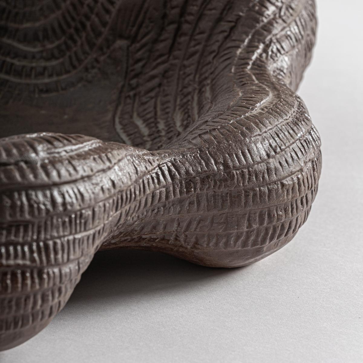 Centro de mesa Freya de estilo contemporáneo, fabricado en cerámica en color marrón.