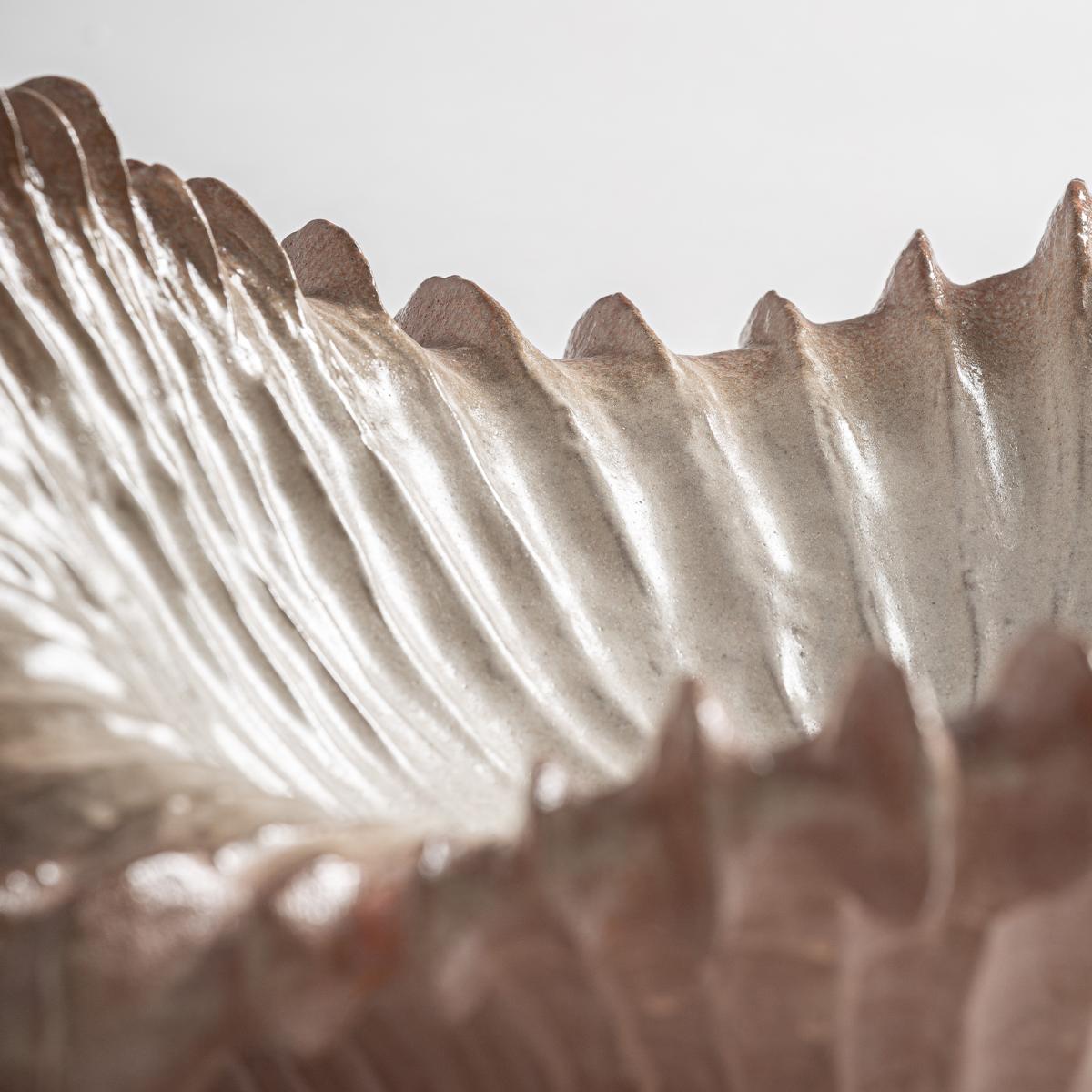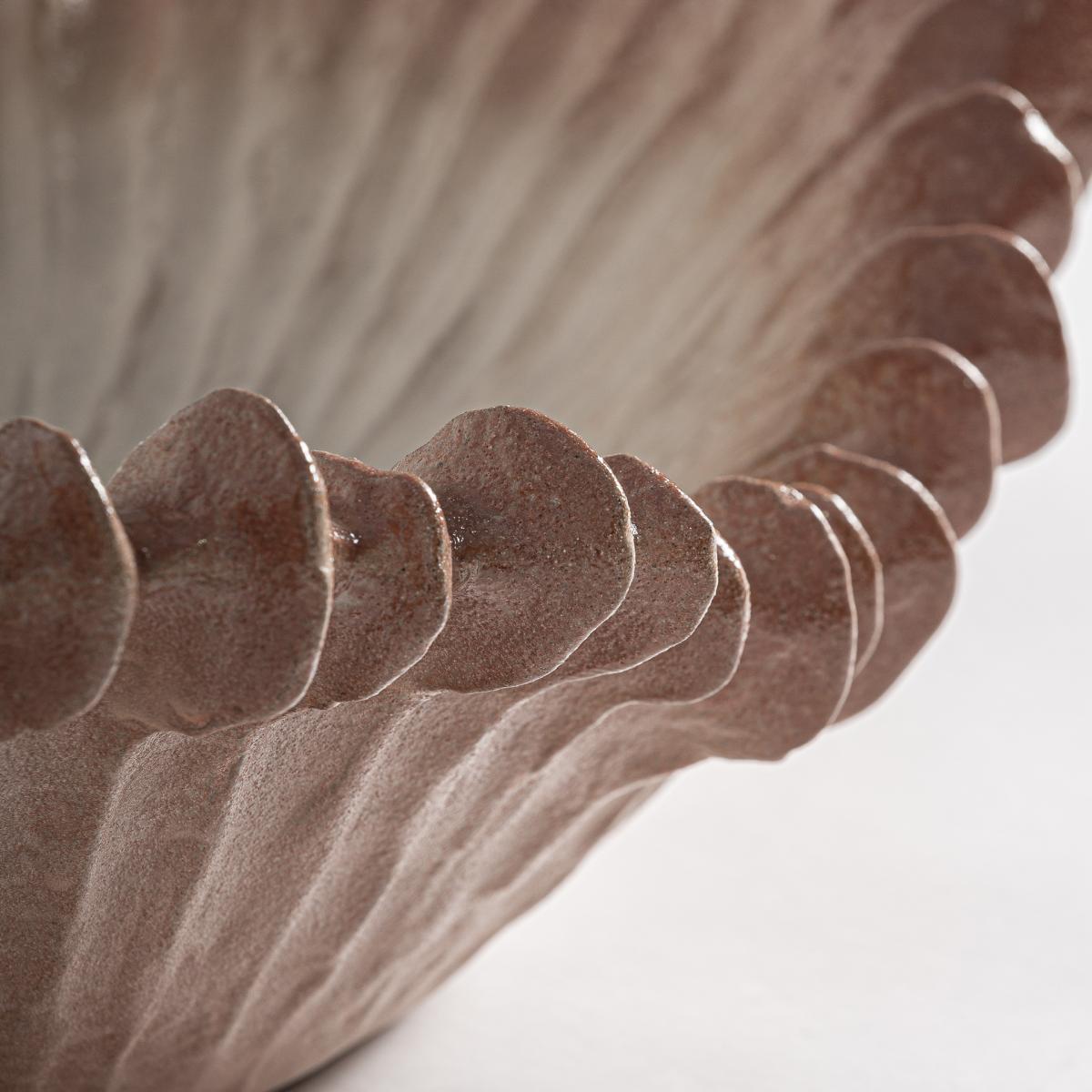 Centro de mesa Lais de estilo contemporáneo, fabricado en cerámica en color marrón claro.