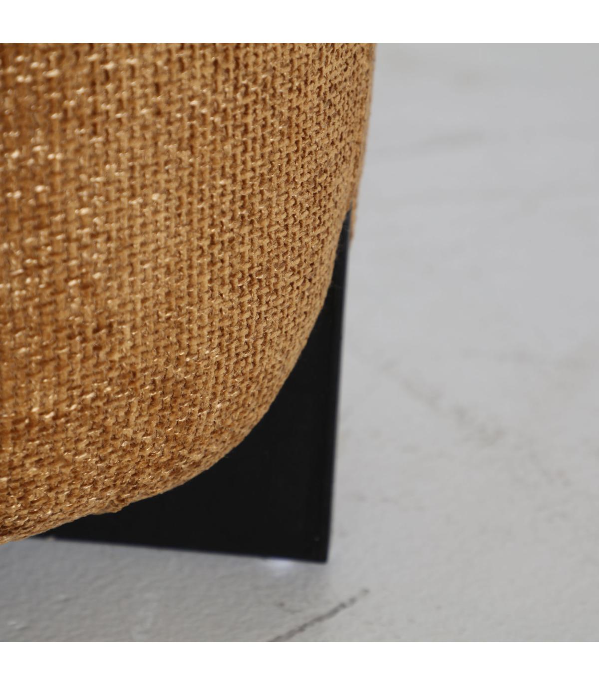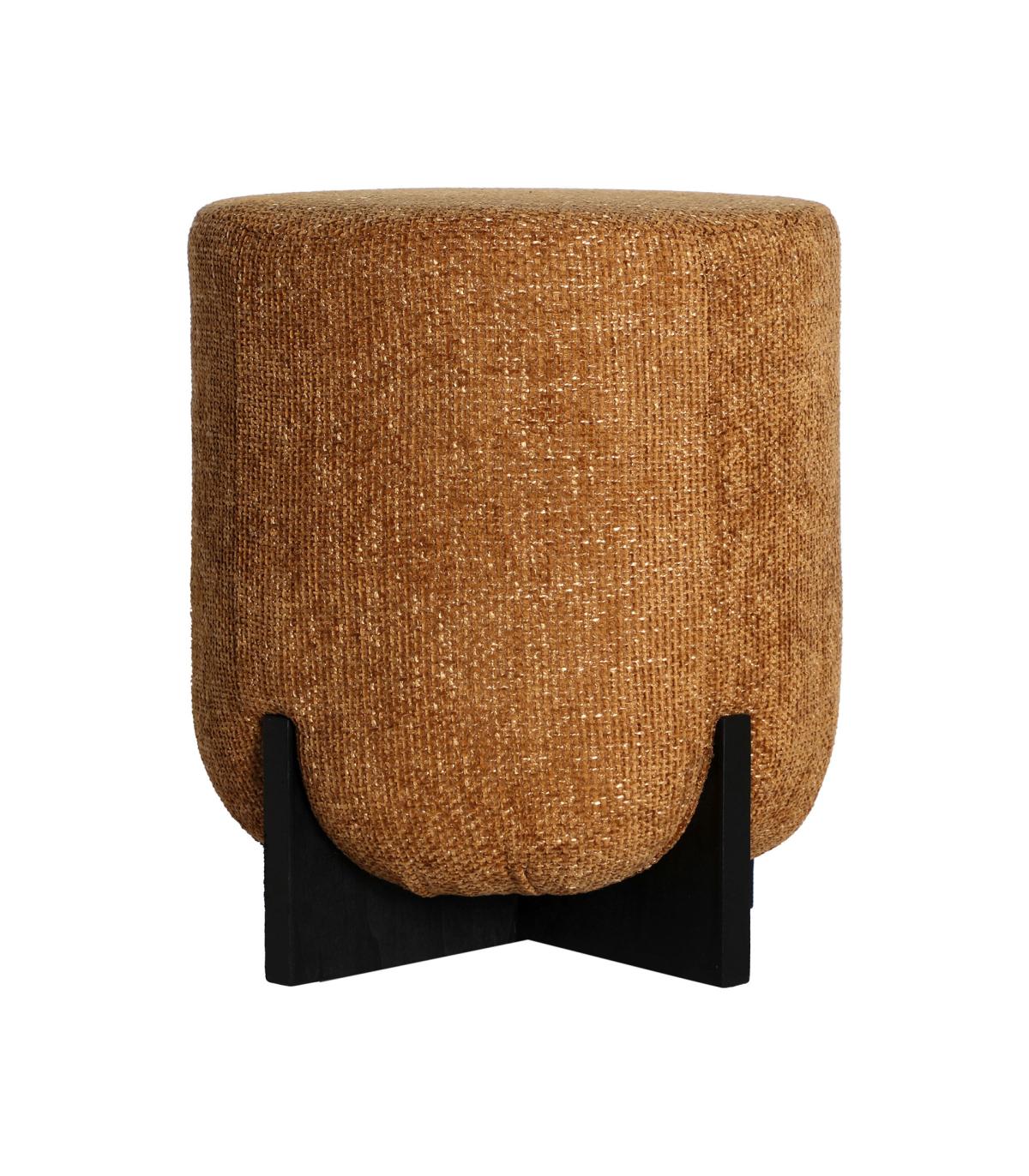 Taburete redondo souvens de estilo contemporáneo, fabricado en poliéster en color ocre, combinado con madera de caucho en color negro.