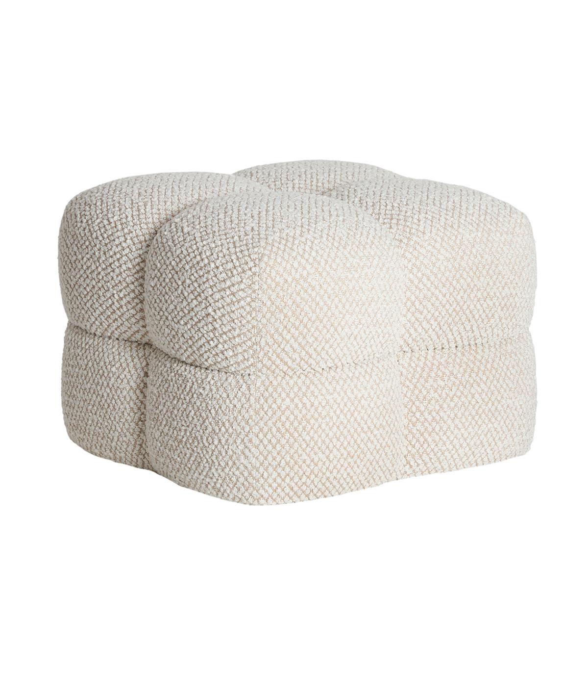 Reposapiés, fabricado en poliéster en color beige, combinado con espuma y madera de pino.