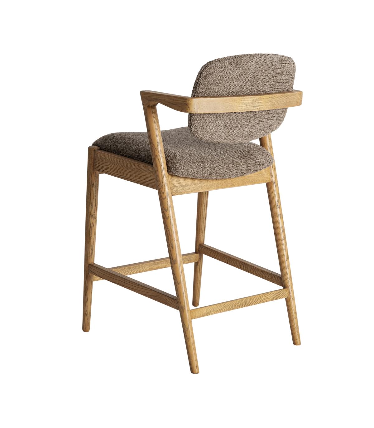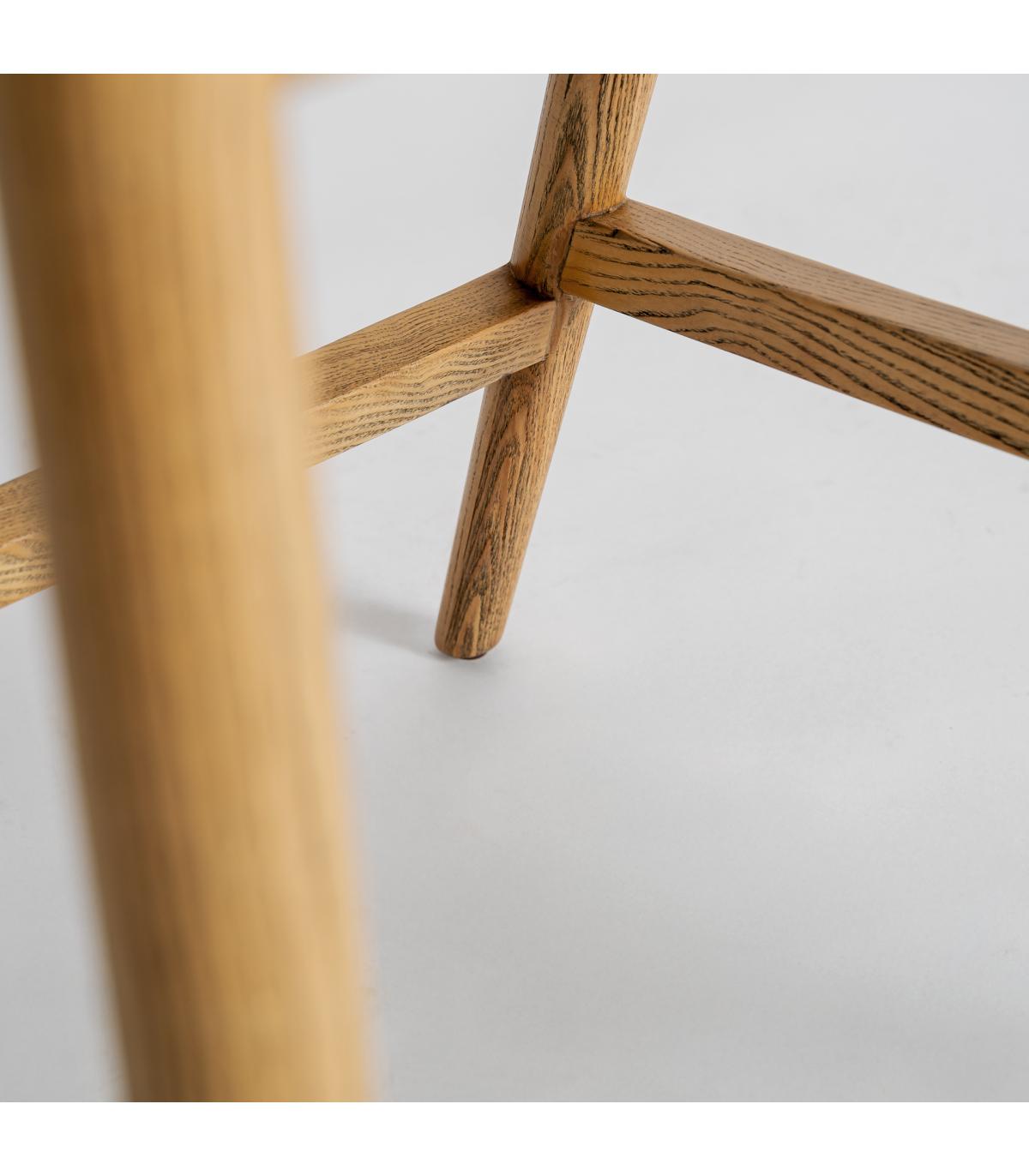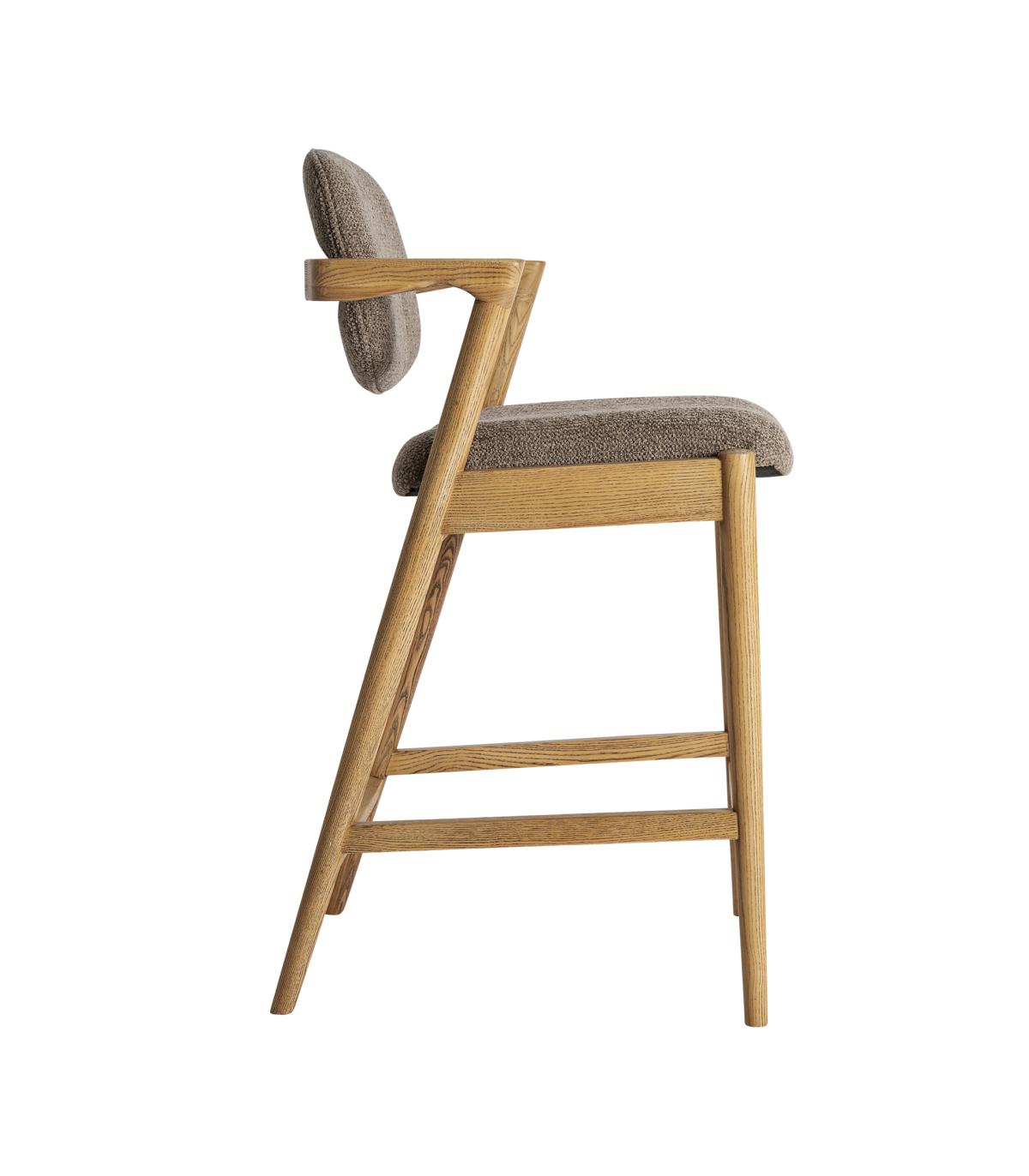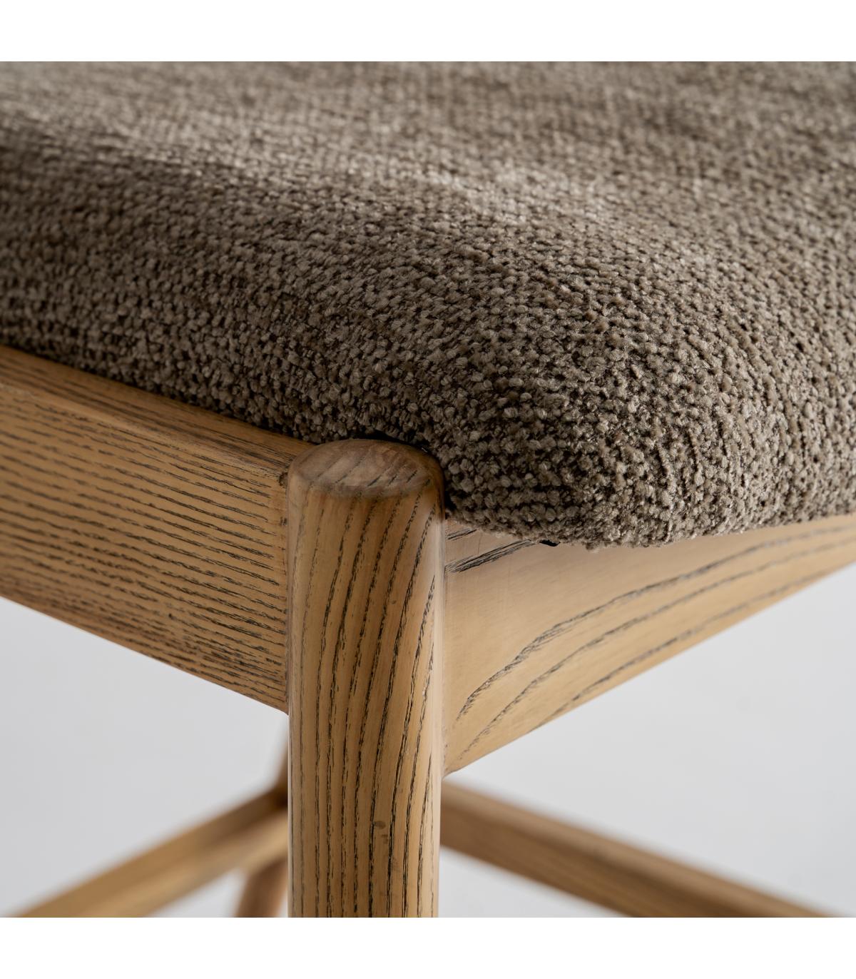 Taburete fabricado en madera de fresno en color marrón combinado con poliéster en color marrón.