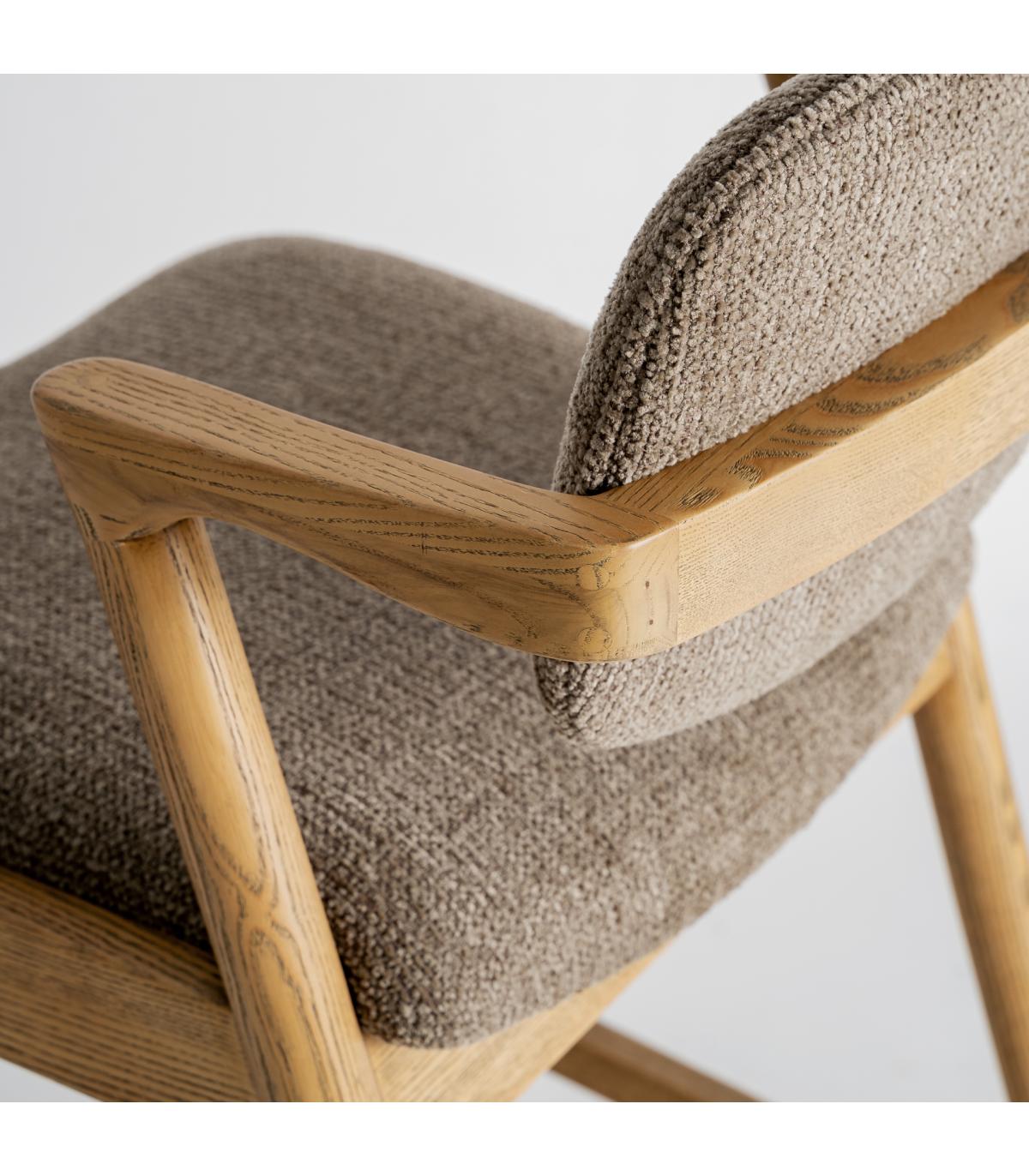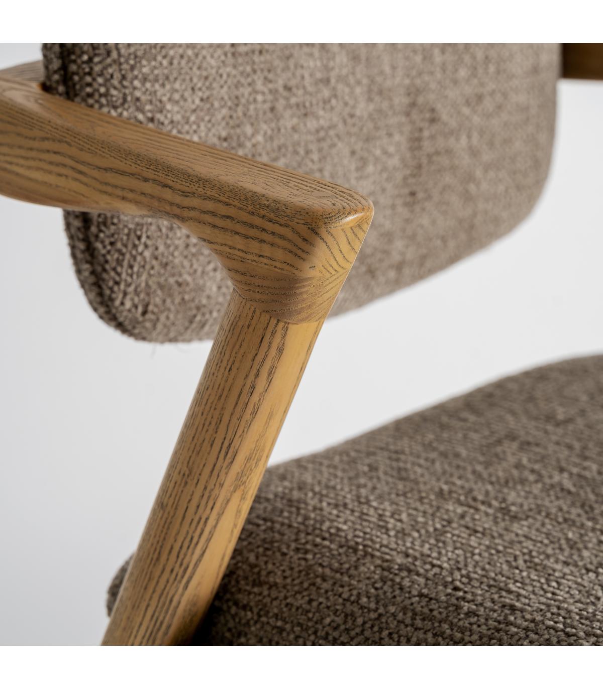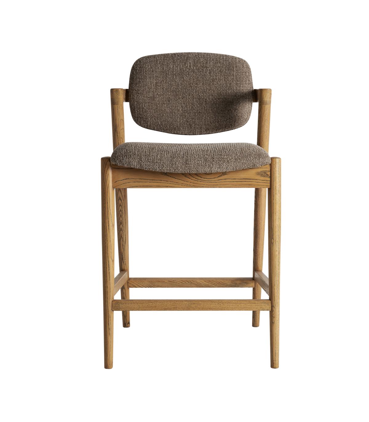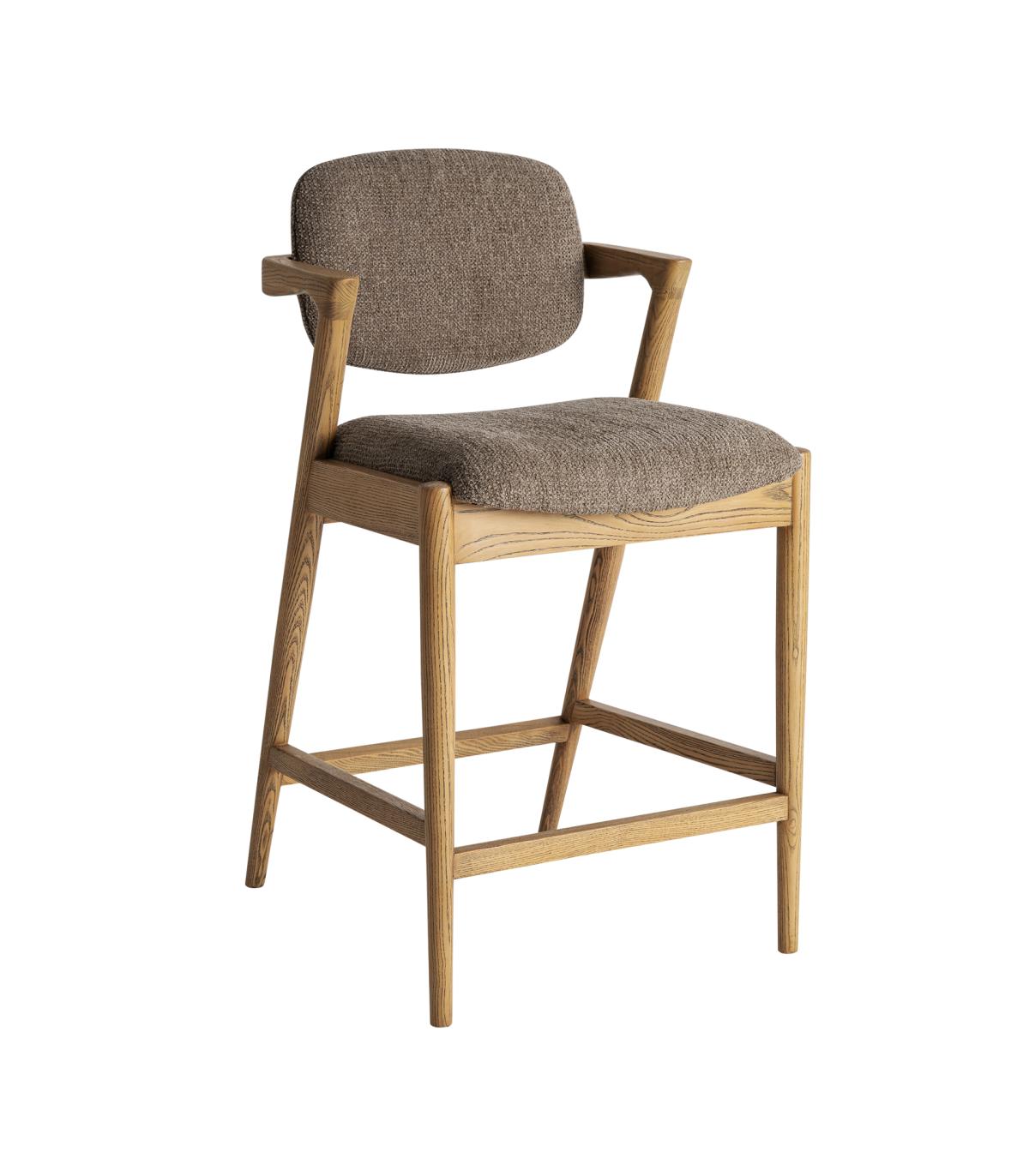 Taburete fabricado en madera de fresno en color marrón combinado con poliéster en color marrón.