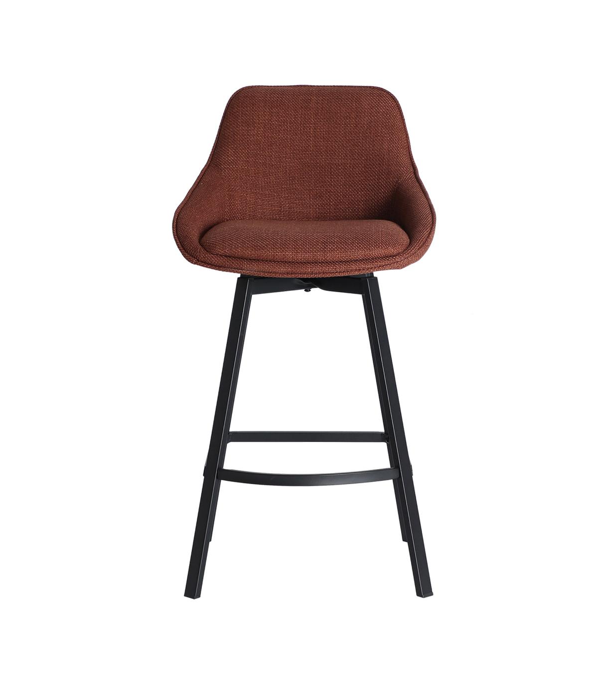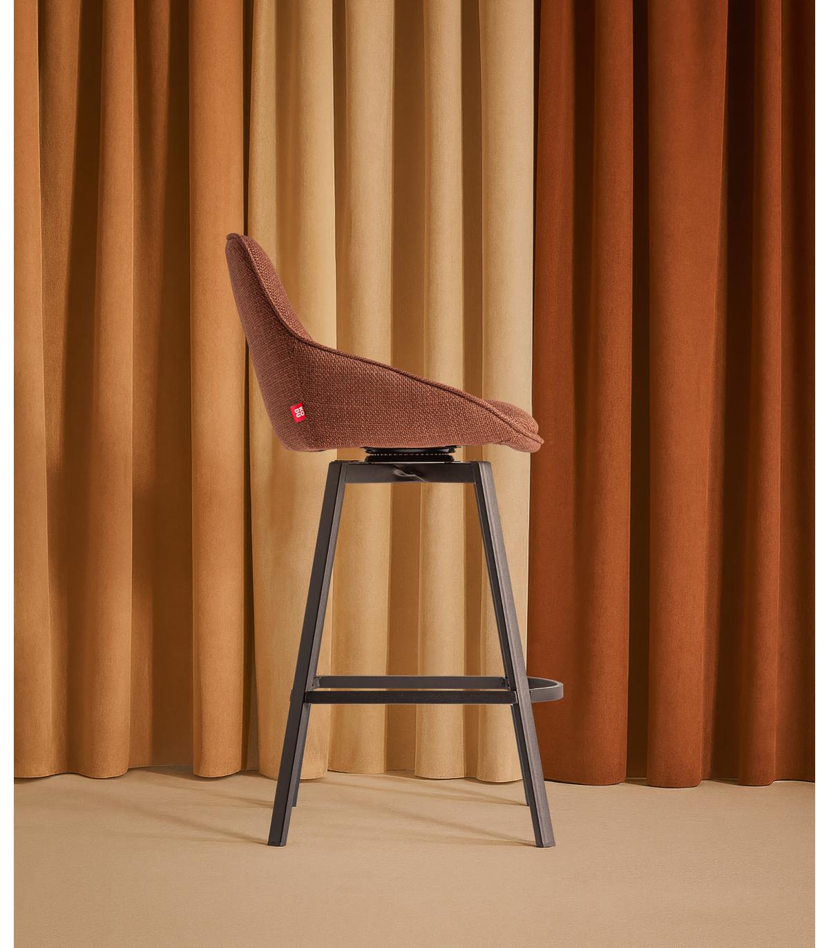Taburete Crino de estilo contemporáneo, fabricado en acero en color negro, combinado con madera contrachapada en color negro y poliéster en color rojo oscuro. Producto desmontable.
