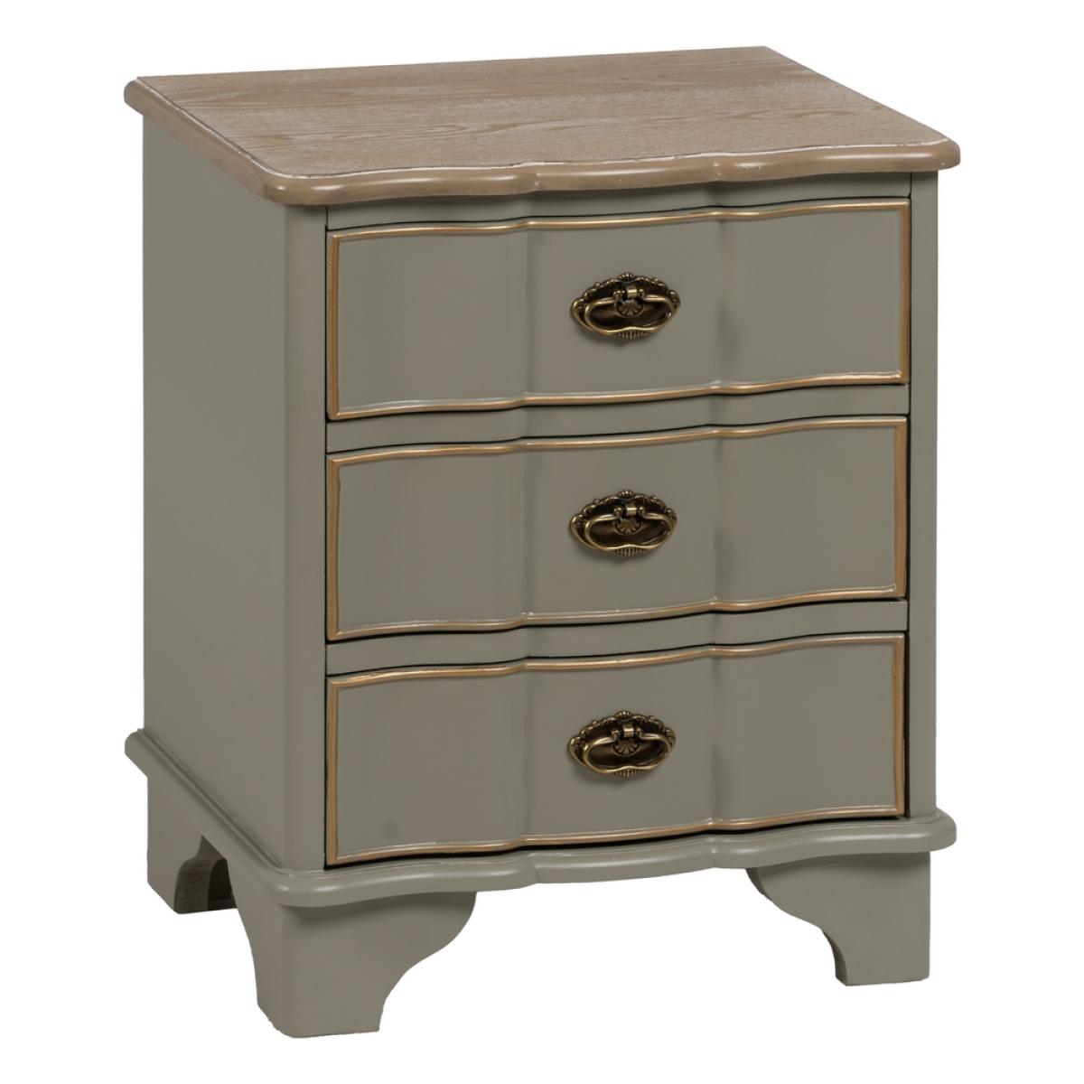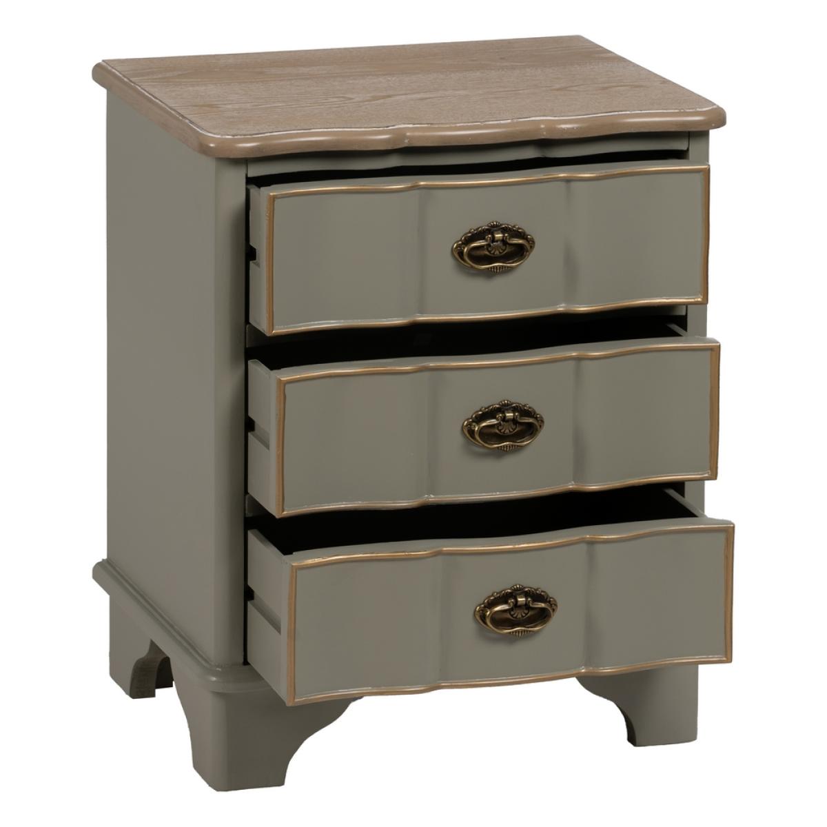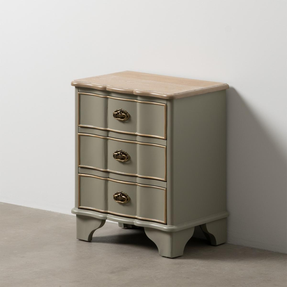MESITA TAUPE MADERA 50 X 35 X 60 CM Material: madera de abeto - Dm Altura patas: 10cm. Medida cajones: 39x11cm.