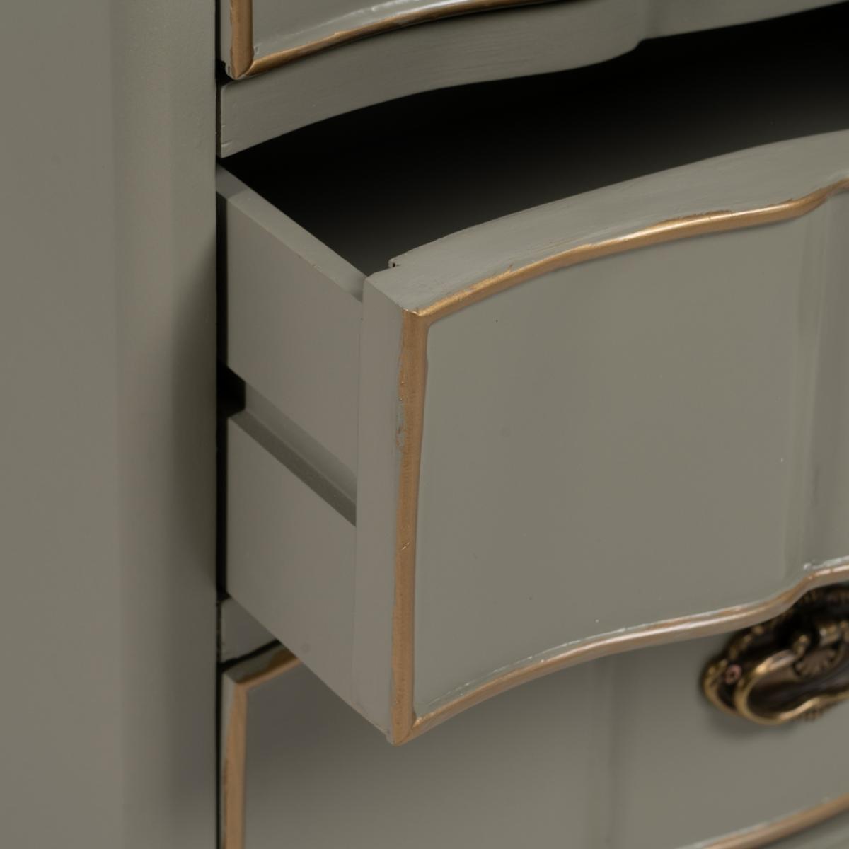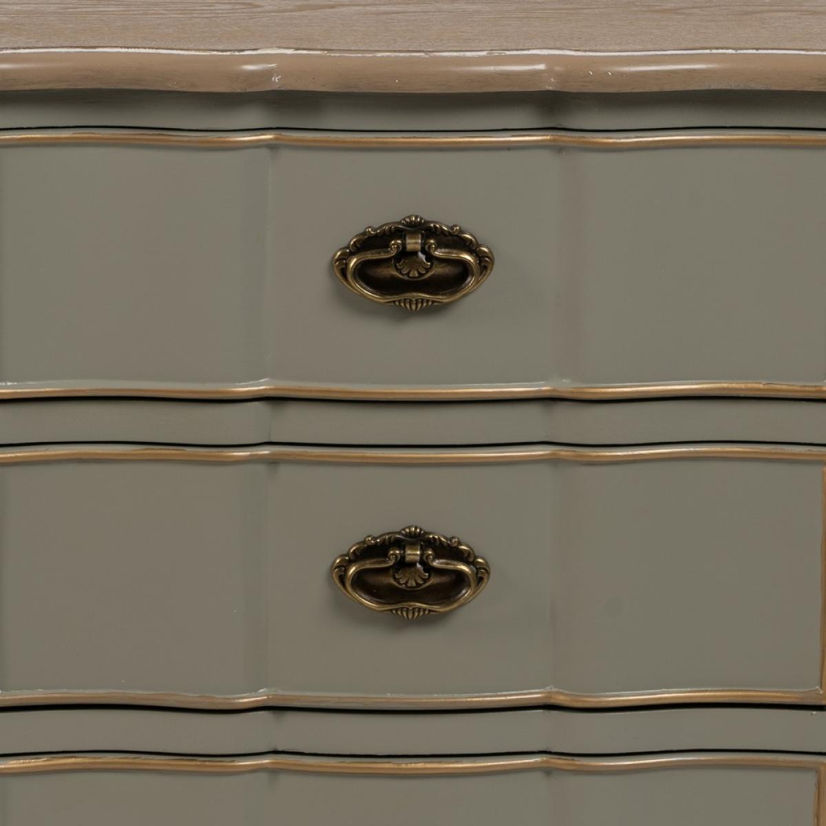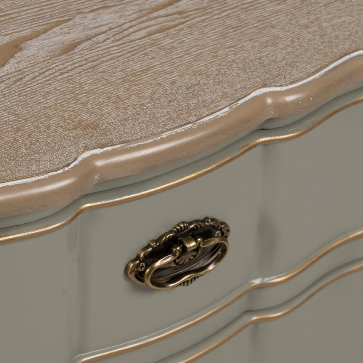 MESITA TAUPE MADERA 50 X 35 X 60 CM Material: madera de abeto - Dm Altura patas: 10cm. Medida cajones: 39x11cm.