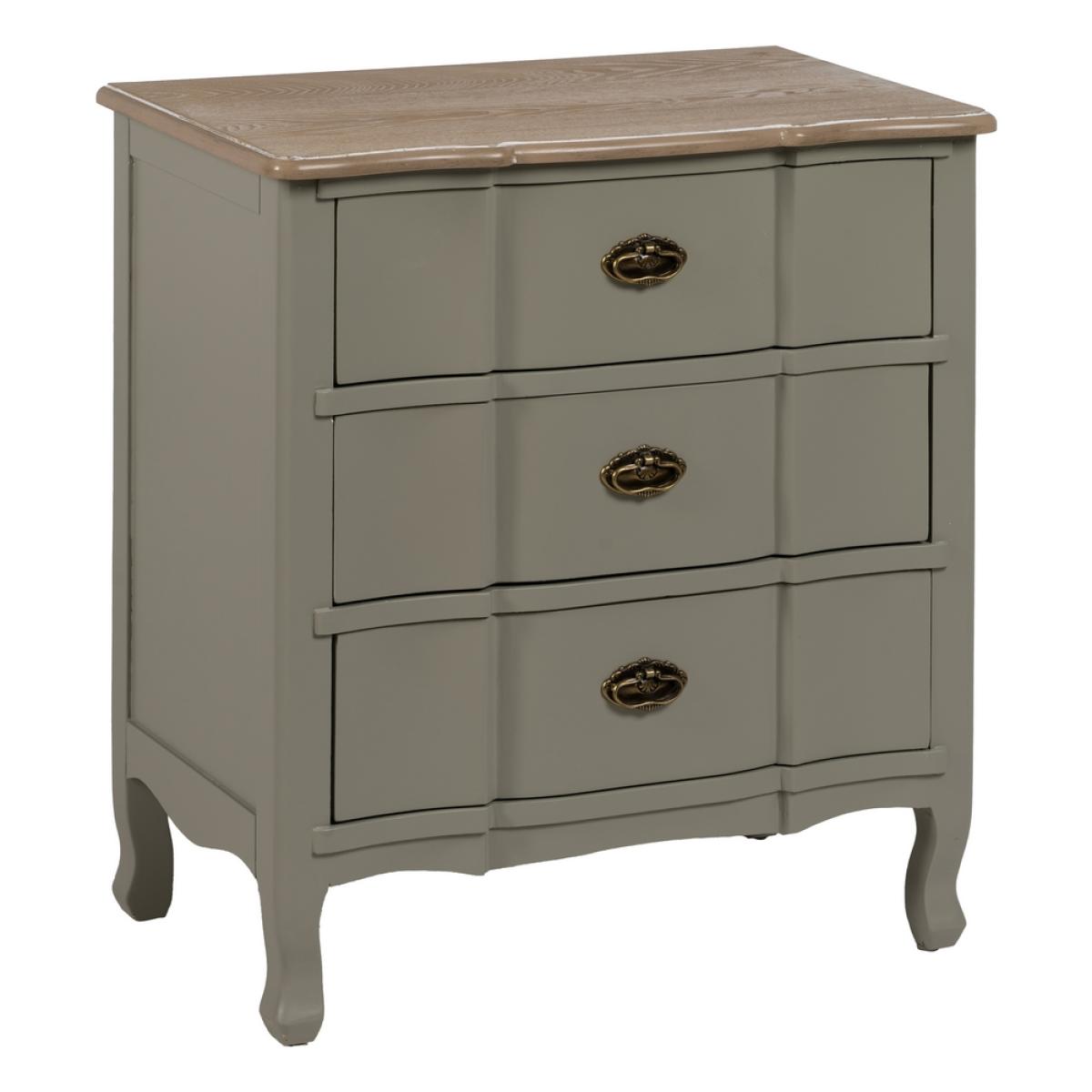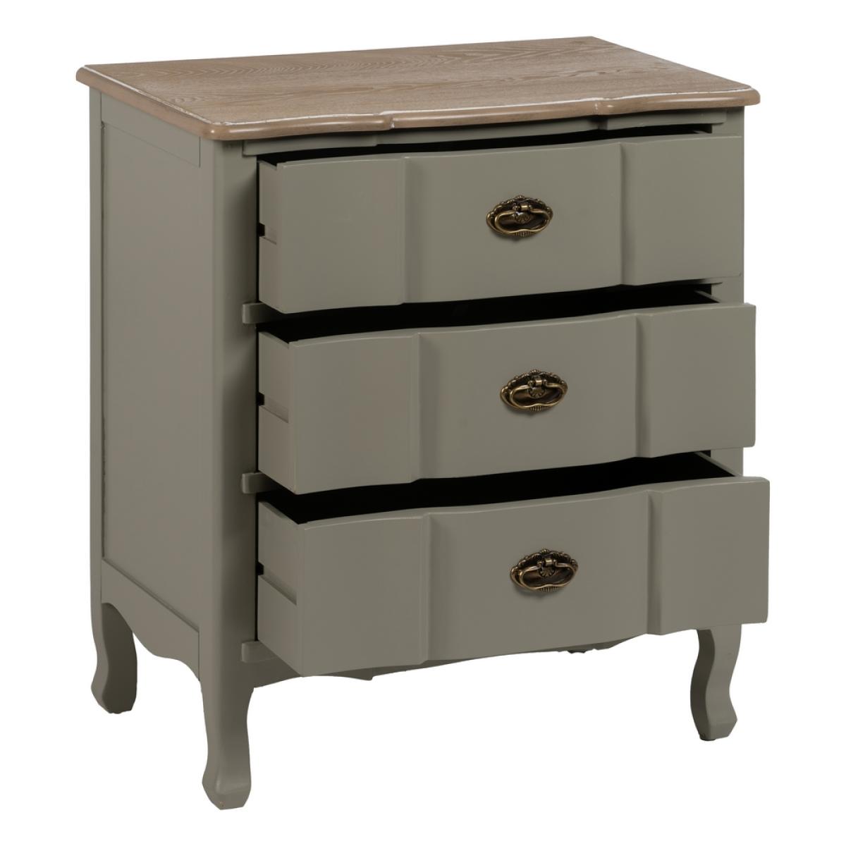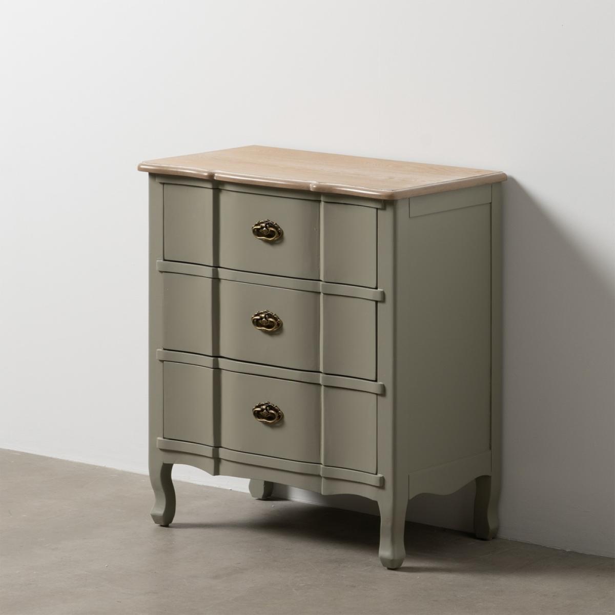 MESITA TAUPE MADERA 66 X 40 X 76 CM Material: madera de abeto - Dm Altura patas: 13cm. Medida cajones: 51x14cm.