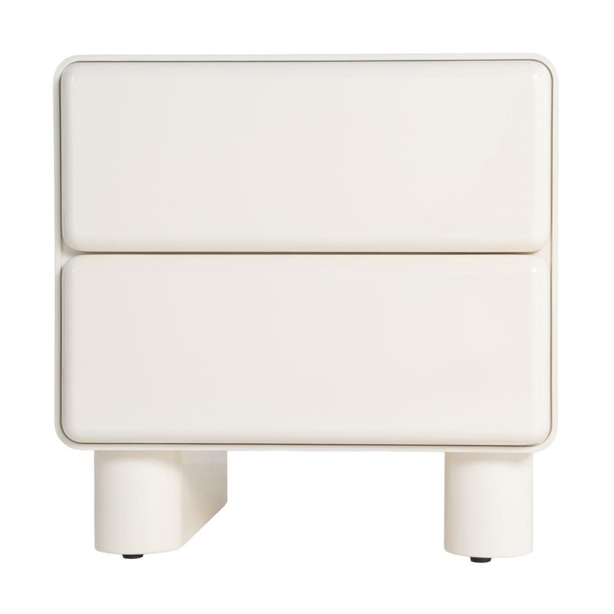 MESITA LACADO CREMA DM DORMITORIO 56,50 X 42,50 X 56,50 CM Material: DM lacado. Cajones: 54x20cm. Altura patas: 13cm.