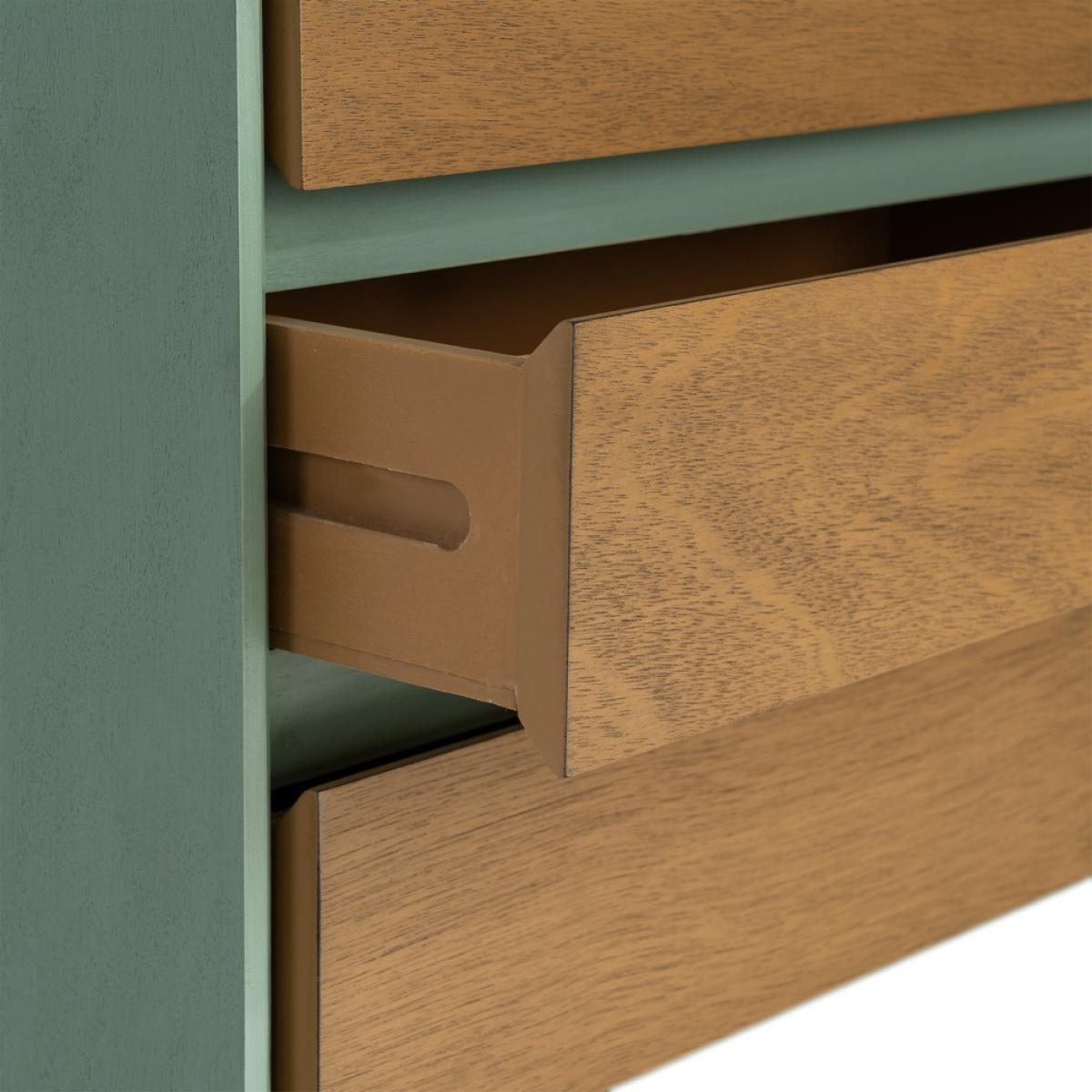 MESITA VERDE DM DORMITORIO 50 X 35 X 62,50 CM Material: Dm. Medida cajones: 47x10.5cm. Altura patas: 23cm.