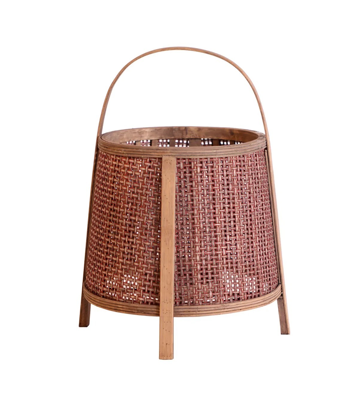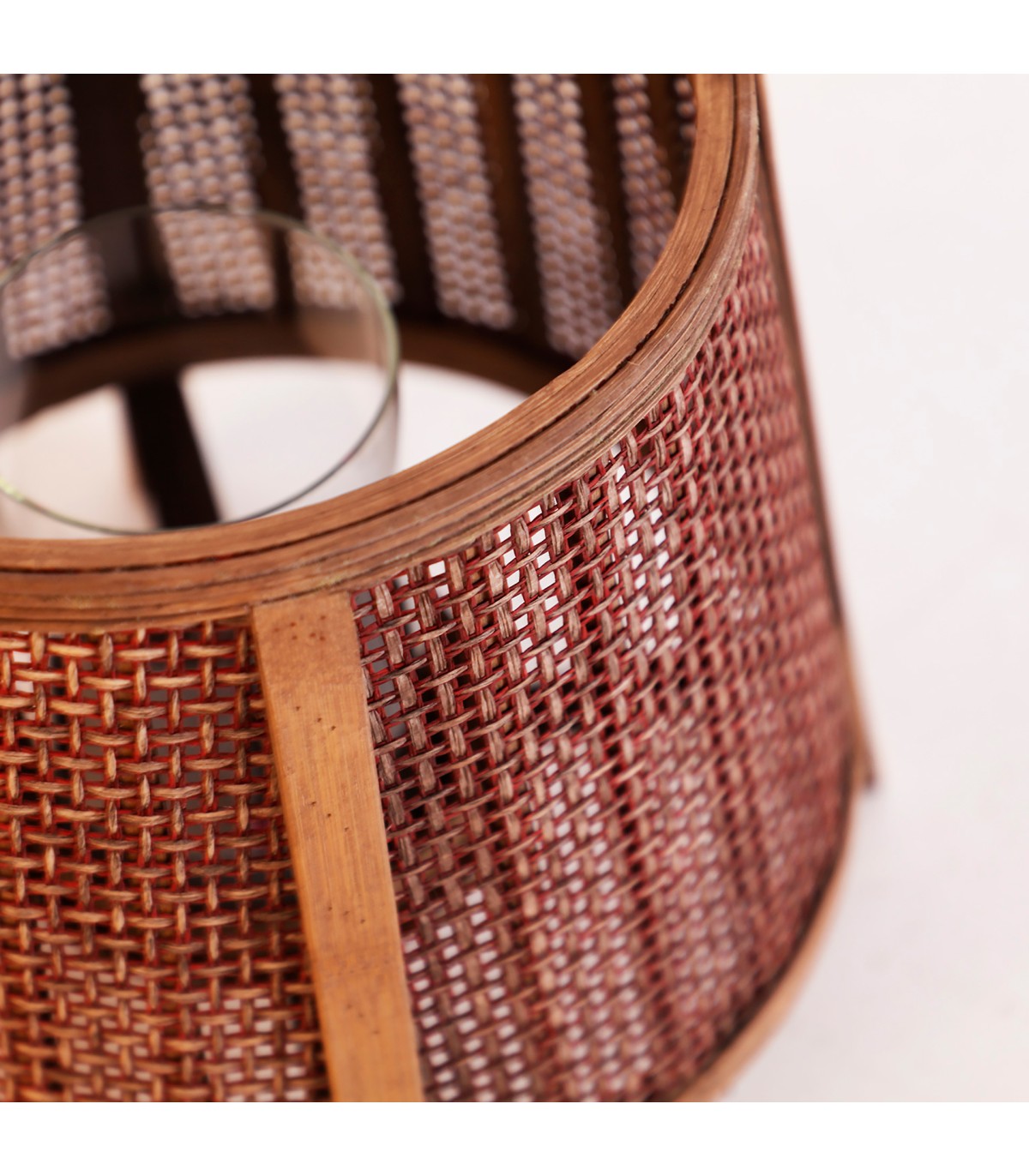 Farol bled, en color natural, de estilo boho. Fabricado en bambú, combinado con lino.