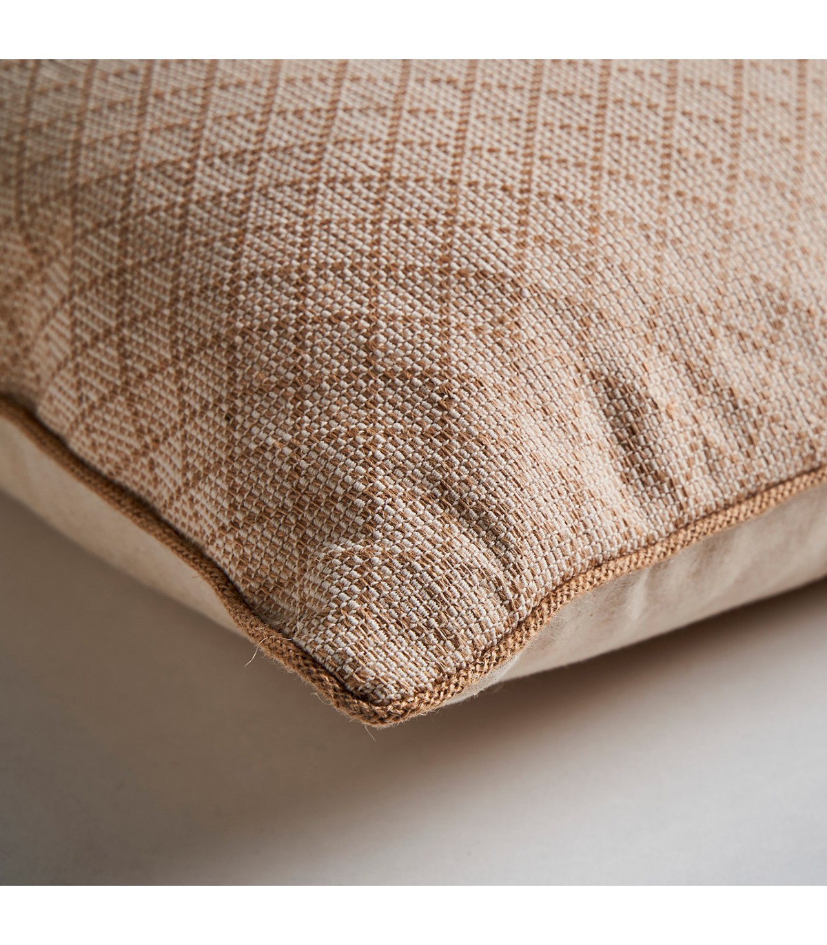 Cojín kellier, en color beige, de estilo contemporáneo. Fabricado en yute, combinado con algodón y poliéster. Producto desenfundable.