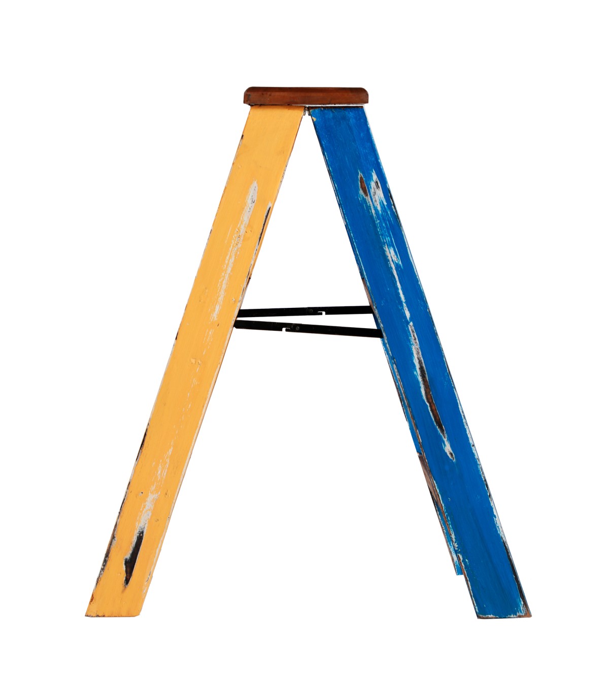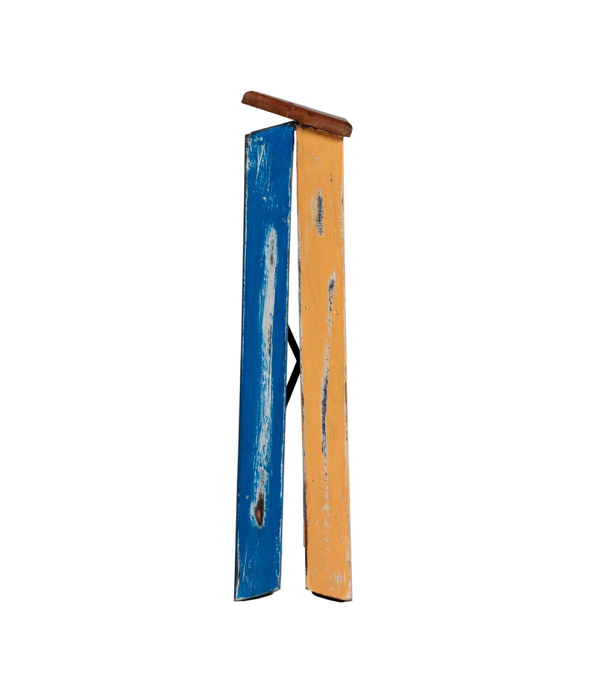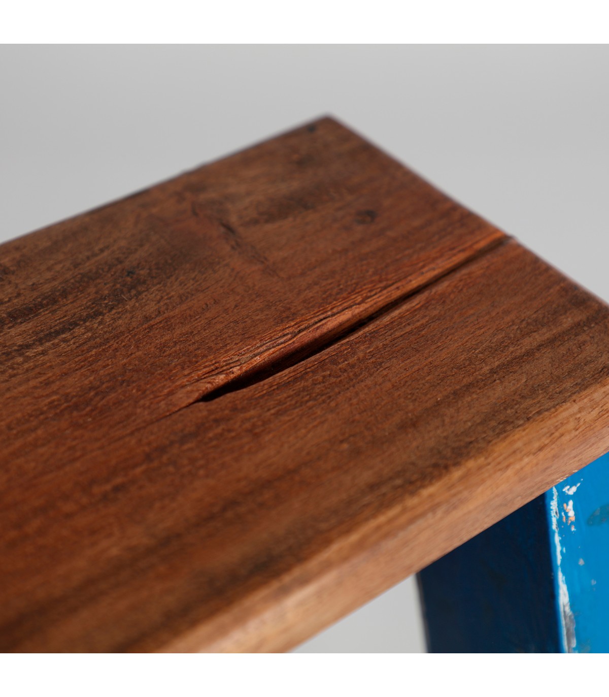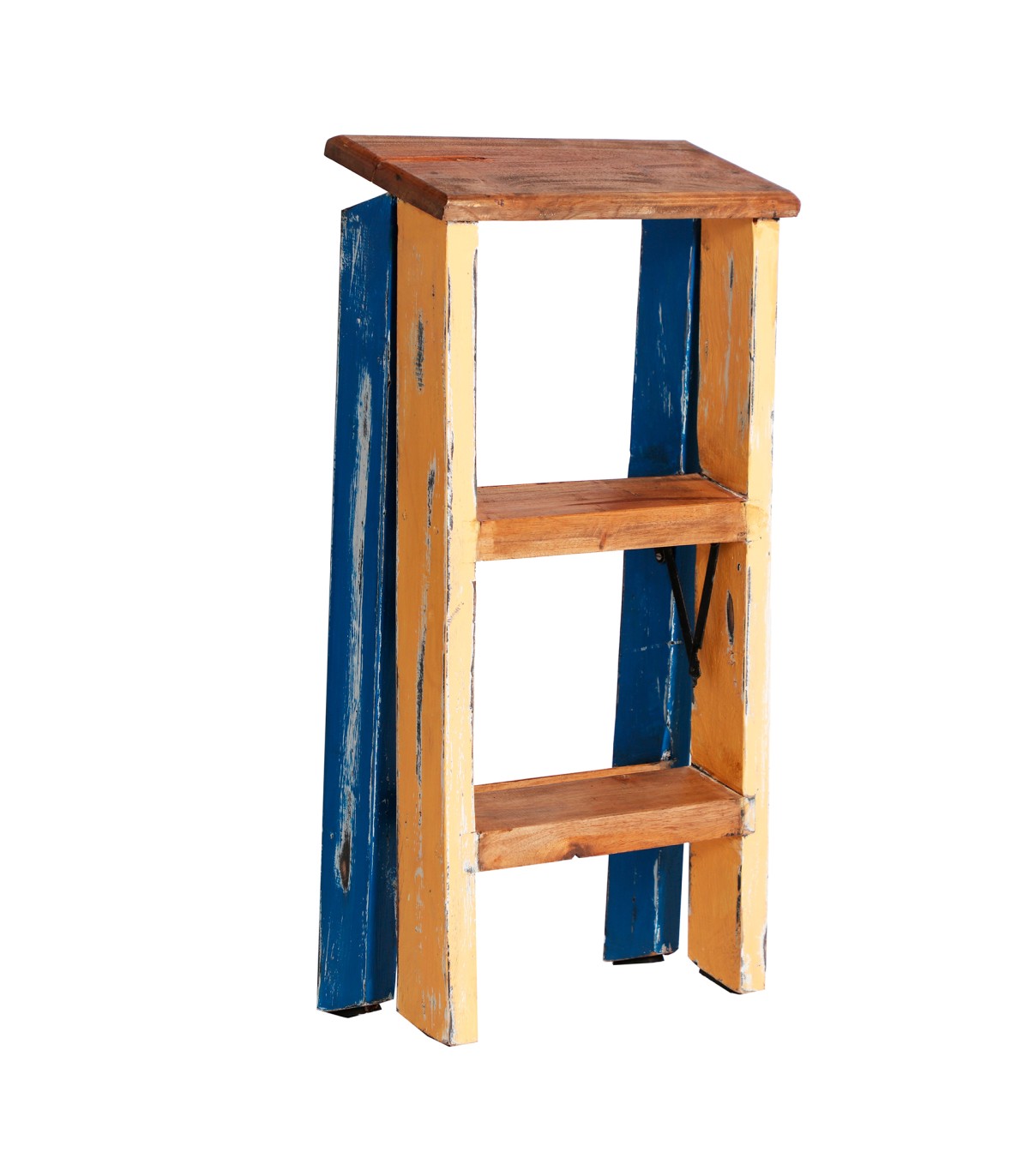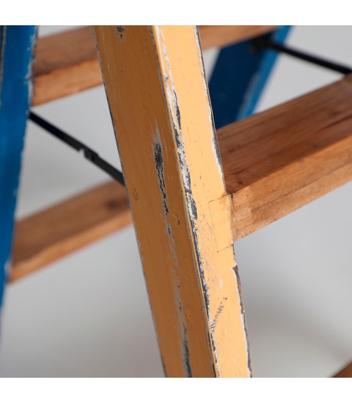 Escalera stabie, en color azul/natural decapado, de estilo colonial. Fabricado en madera de mahogany.