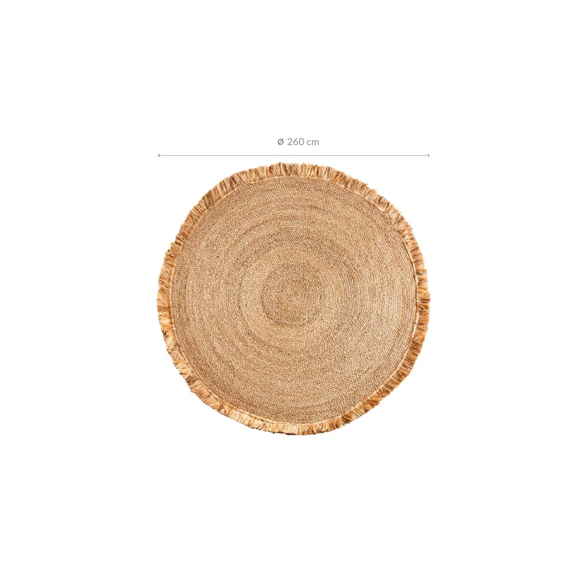 Alfombra redonda kisai de estilo colonial fabricado en yute en color arena con acabado natural.