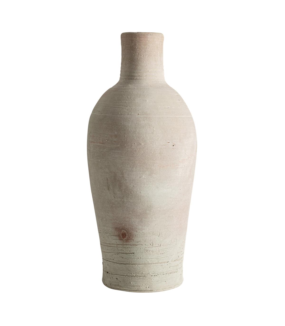 Tinaja de estilo clásico fabricado en arcilla en color blanco roto con acabado envejecido.