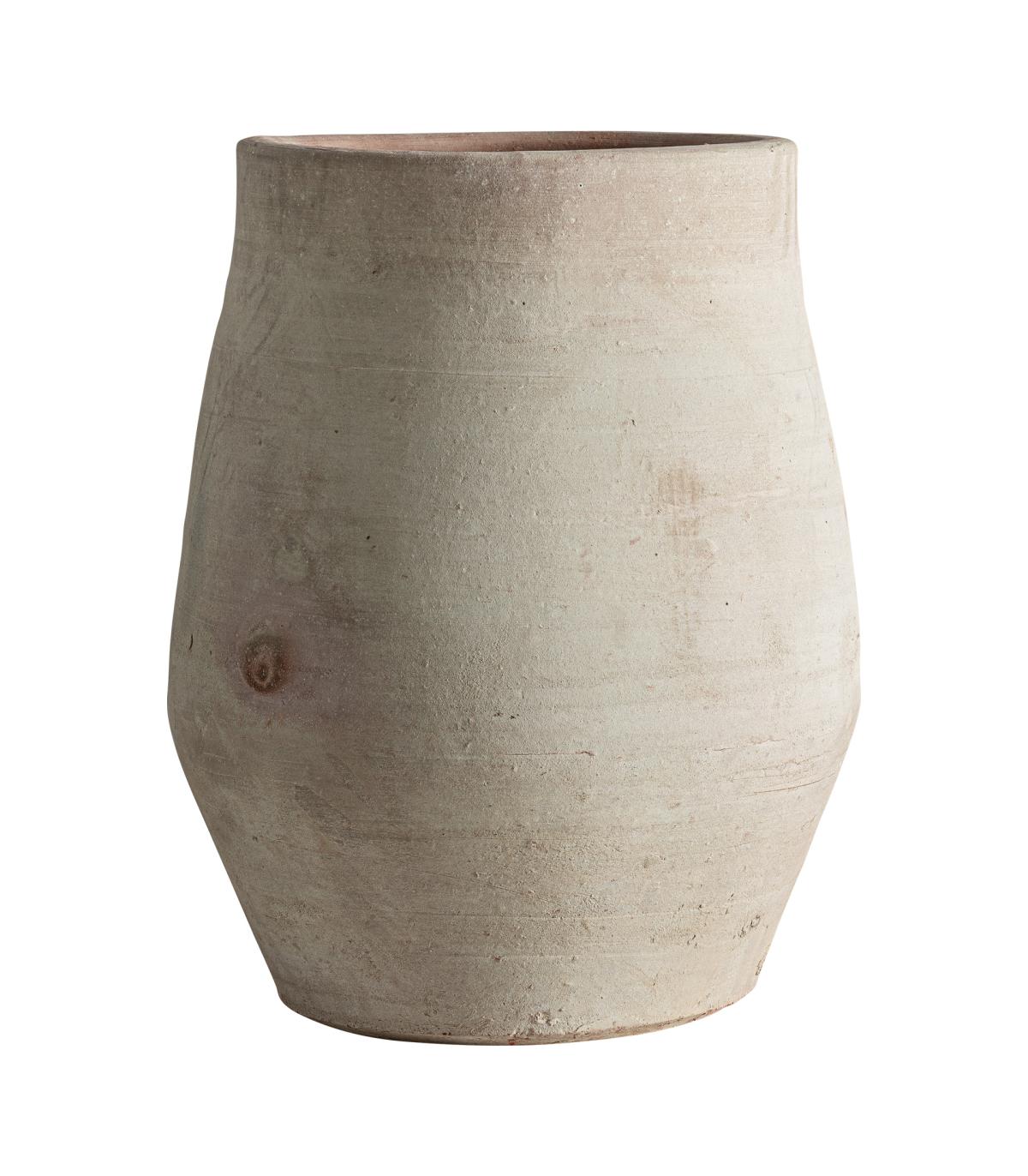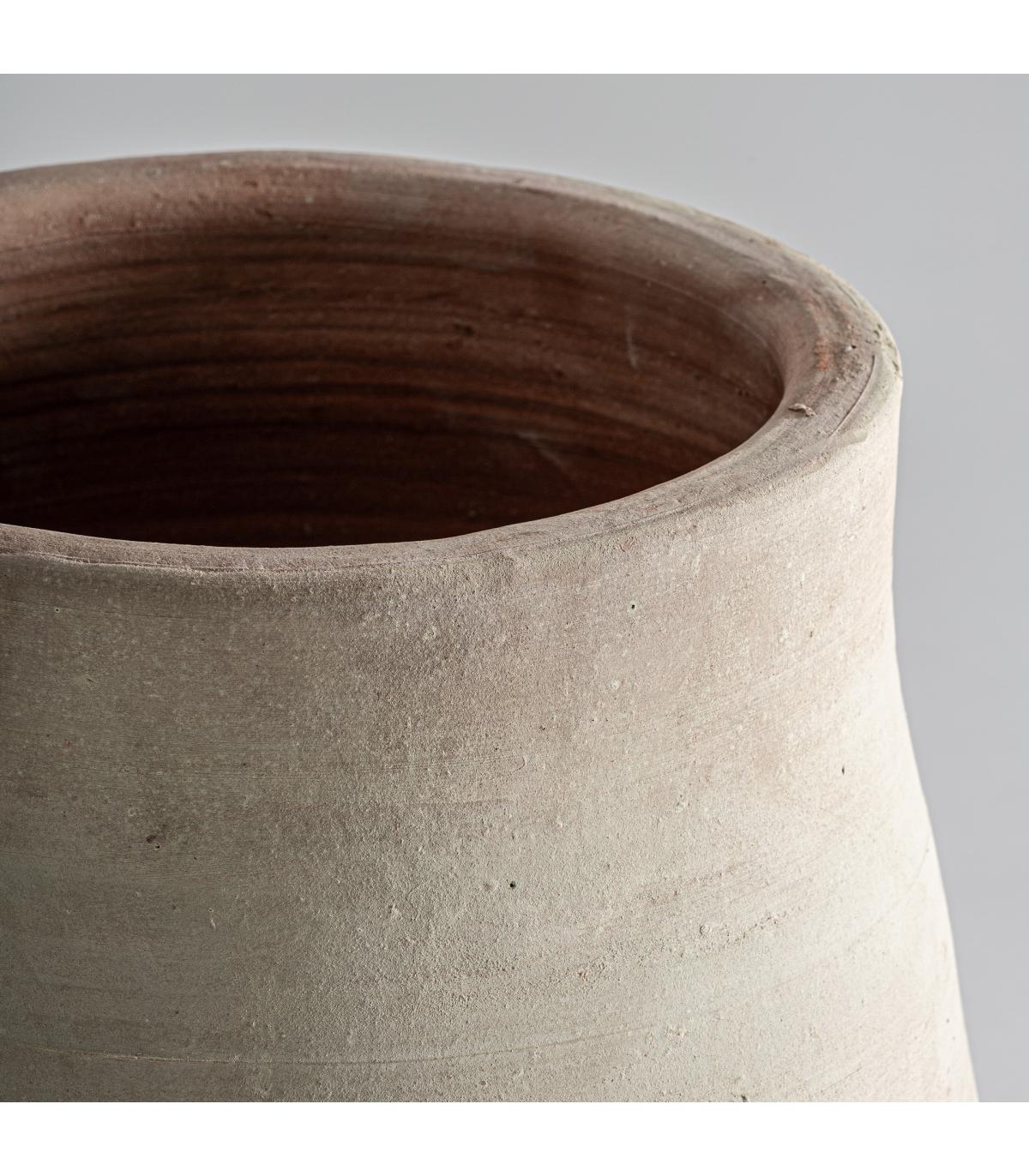 Tinaja de estilo clásico fabricado en arcilla en color blanco roto con acabado envejecido.