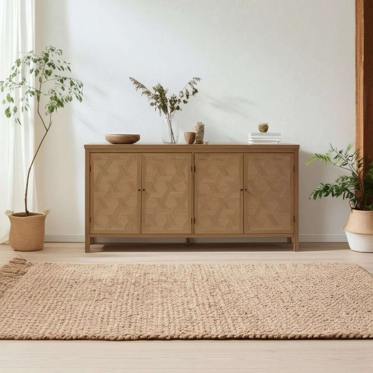 APARADOR NATURAL DM-MADERA 160 X 40 X 80 CM Material: estructura principal madera de paulonia - resto Dm. Altura pata: 10.5cm. Medida puerta: 37x60cm. Leja interior, altura hueco: 33 - 33cm. No precisa montaje.