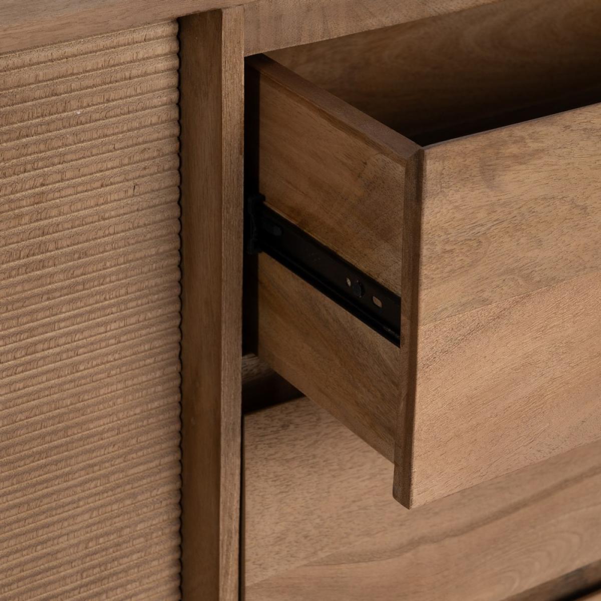 APARADOR NATURAL MADERA DE MANGO SALÓN 180 X 40 X 91 CM Material: madera de mango, hierro. 19cm. altura patas 2 puertas correderas 3 cajones medidas: 52x30cm.