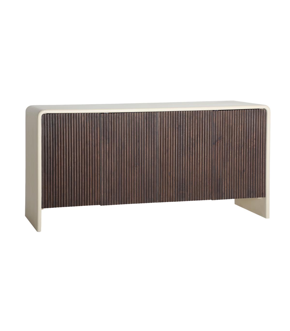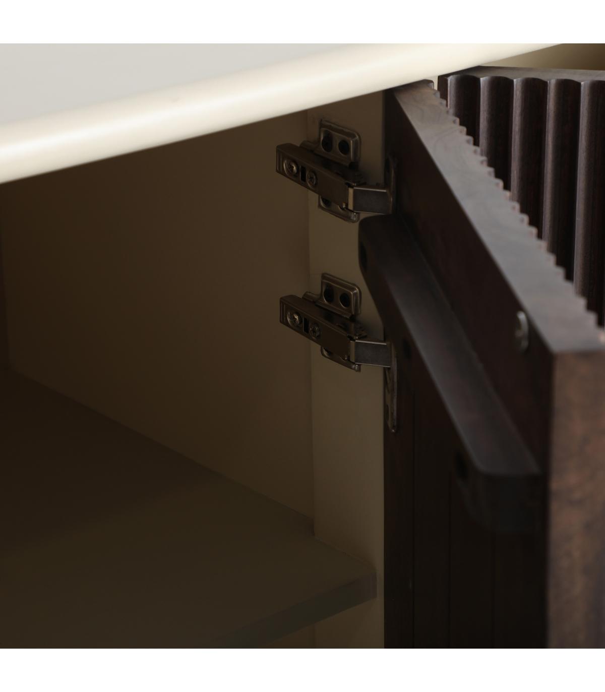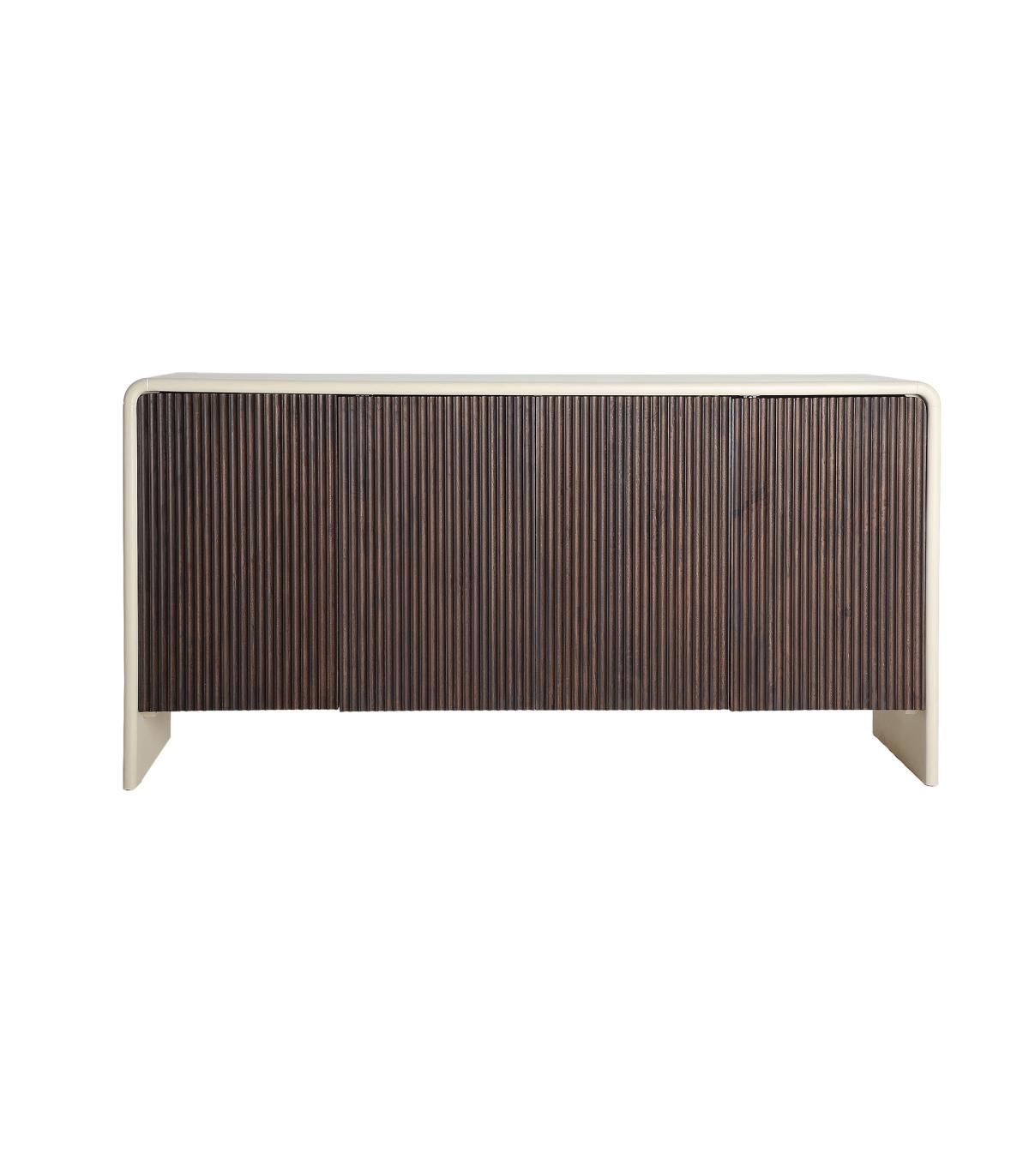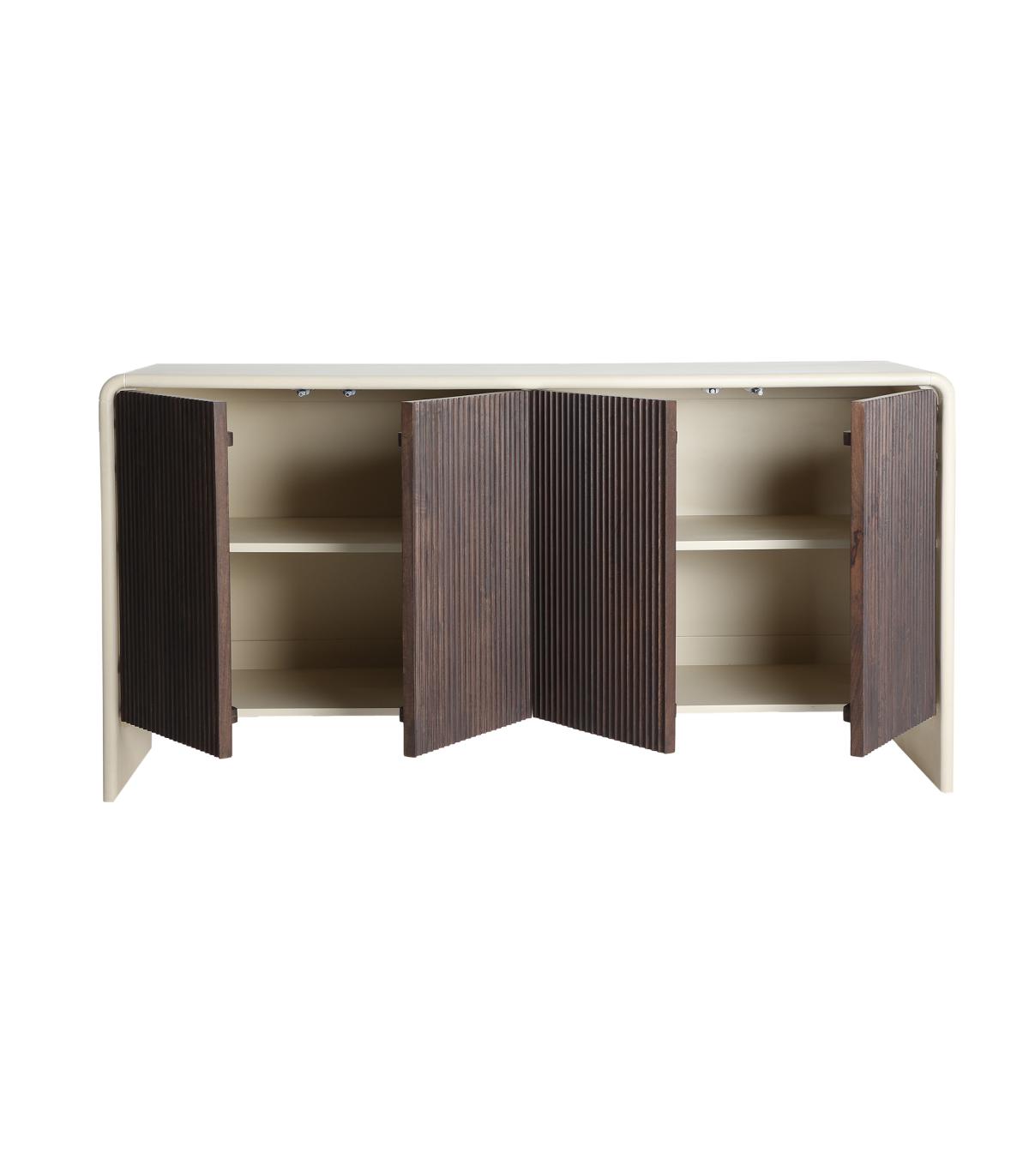 Aparador Milhar de estilo contemporáneo, fabricado en madera de mango en color marrón, combinado con madera dm en color beige.
