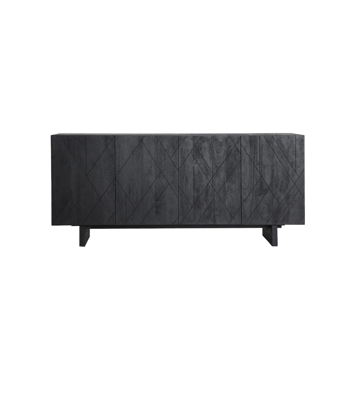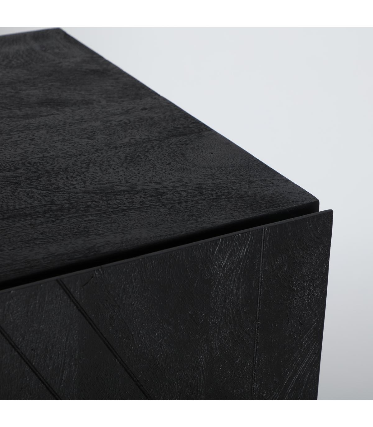 Aparador Bouloc de estilo contemporáneo, fabricado en madera de mango en color negro, combinado con madera dm.