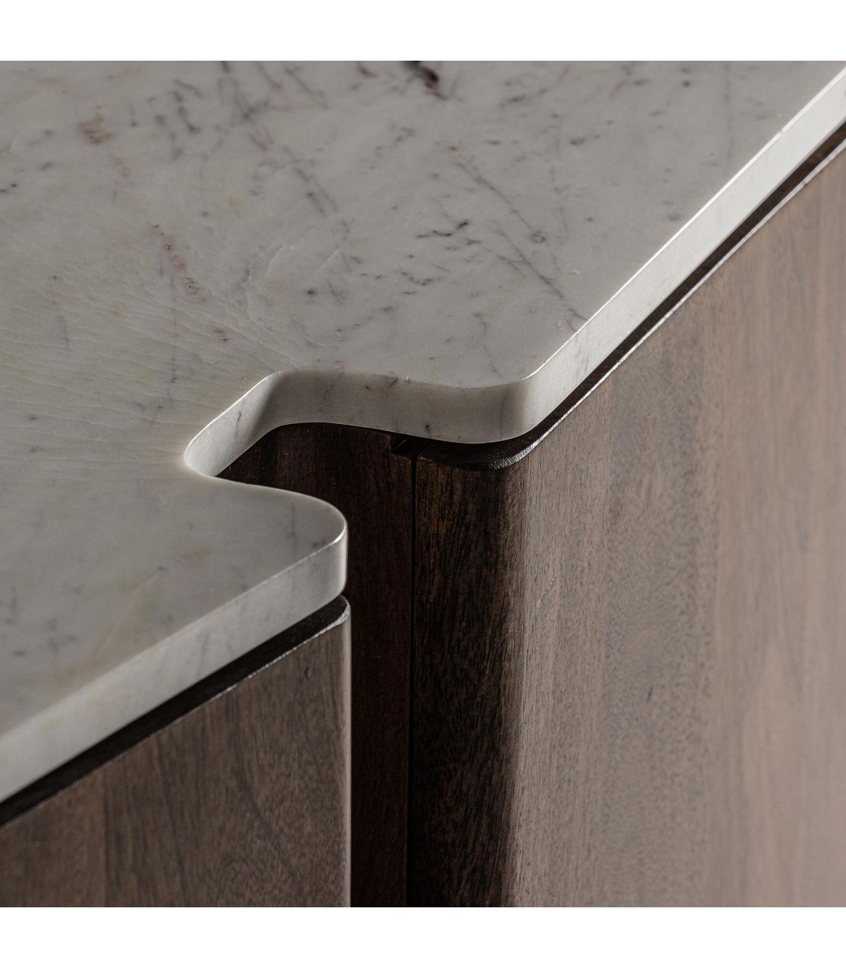 Aparador konz de estilo contemporáneo fabricado en madera de mango en color blanco combinado con mármol en color marrón. Producto desmontable.