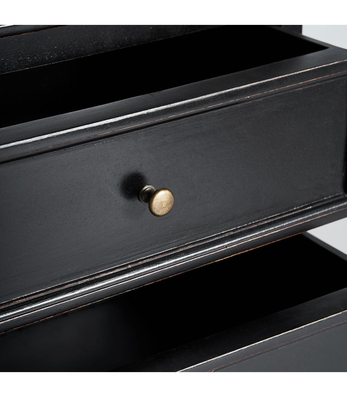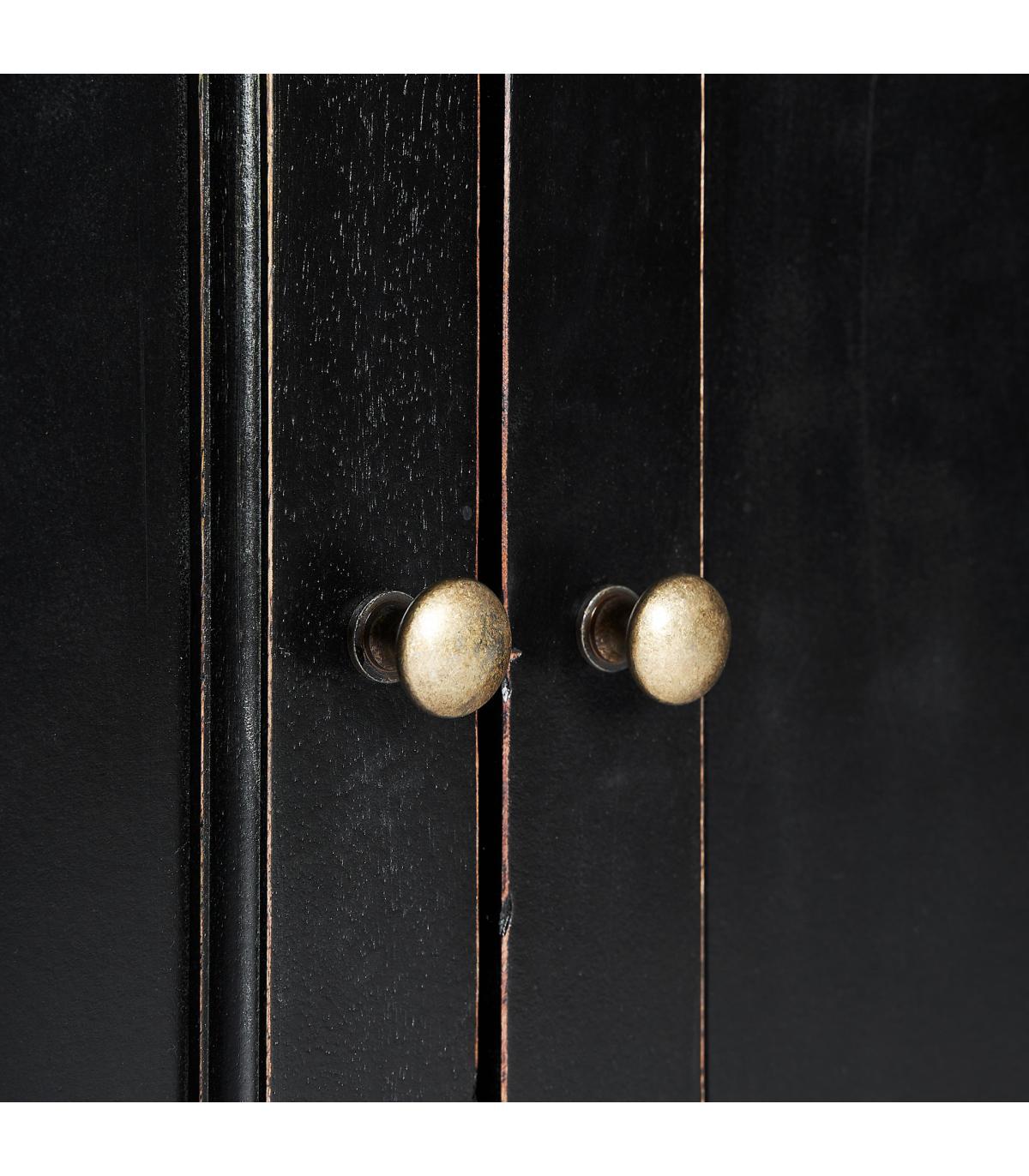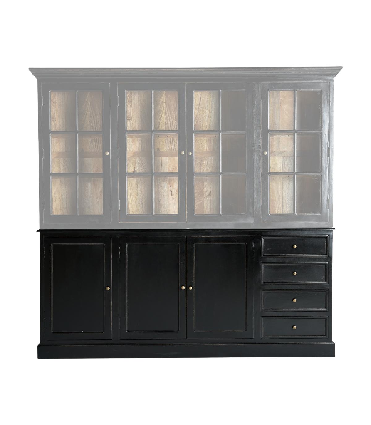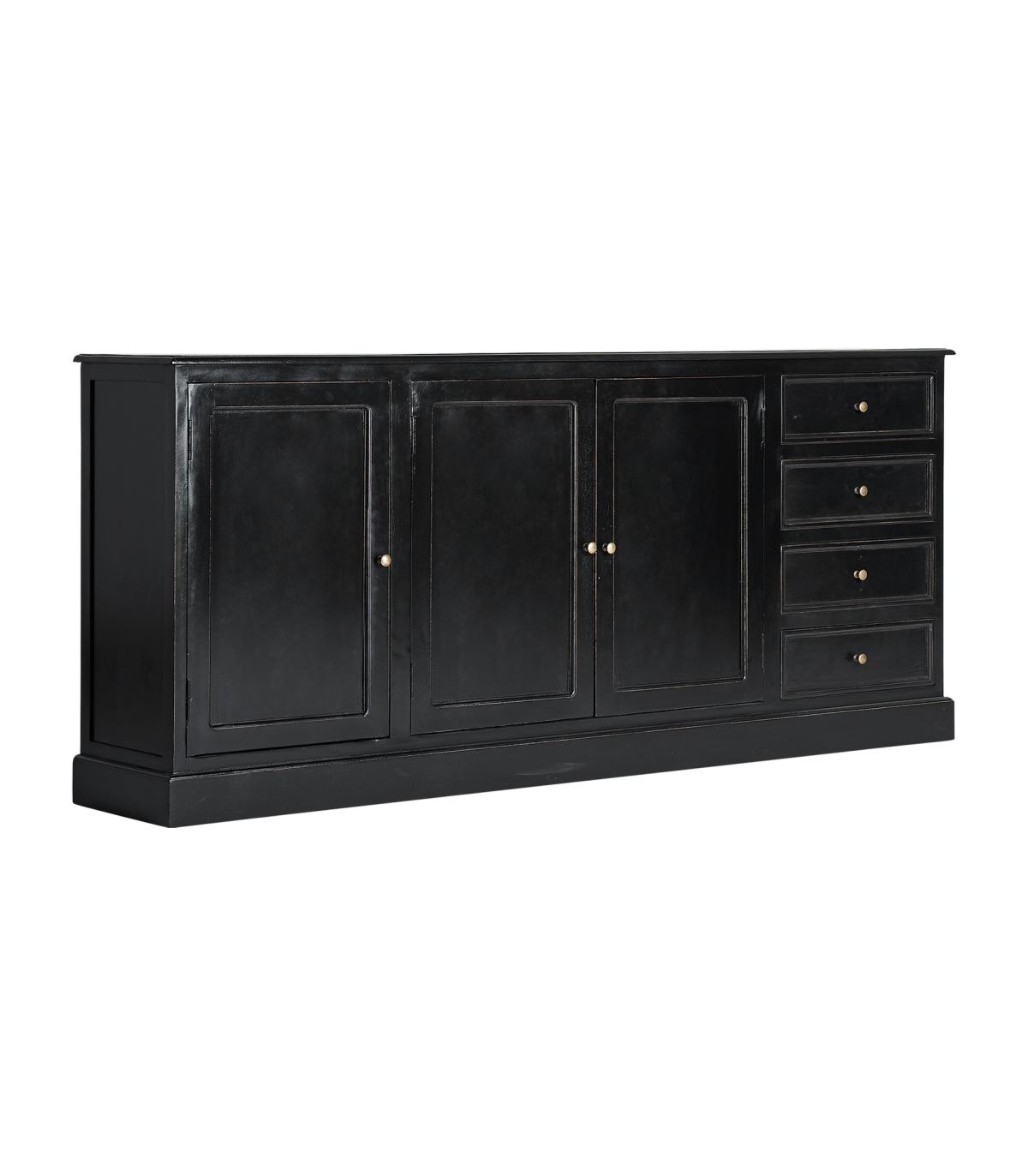 Aparador Zenica de estilo colonial fabricado en madera de mango en color negro combinado con madera dm en color negro. Compatible con: 33010.