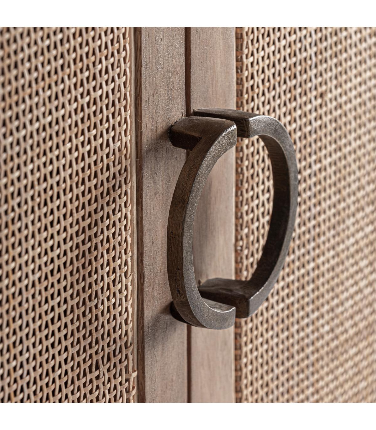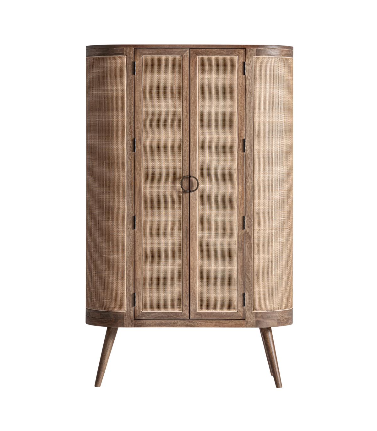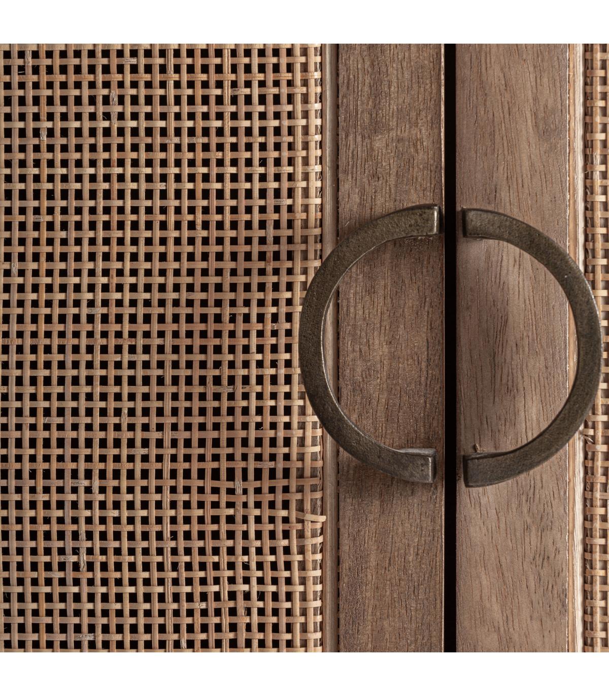 Armario Beckley de estilo nórdico fabricado en madera de mango en color marrón combinado con mimbre en color marrón claro. Producto desmontable.