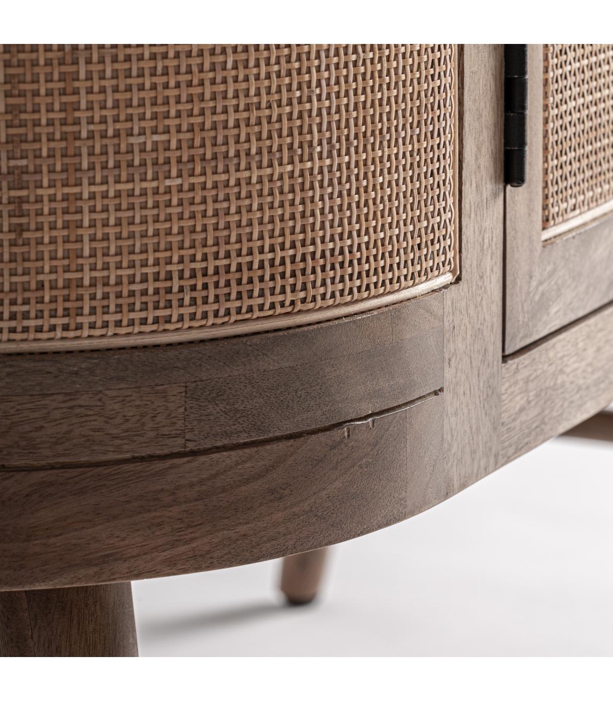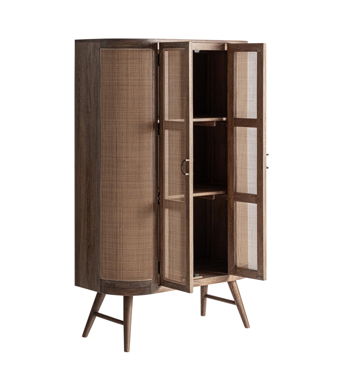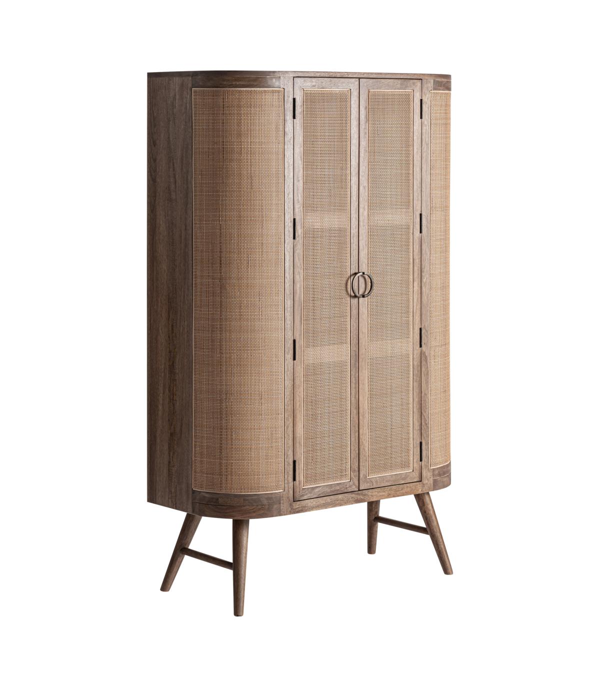 Armario Beckley de estilo nórdico fabricado en madera de mango en color marrón combinado con mimbre en color marrón claro. Producto desmontable.