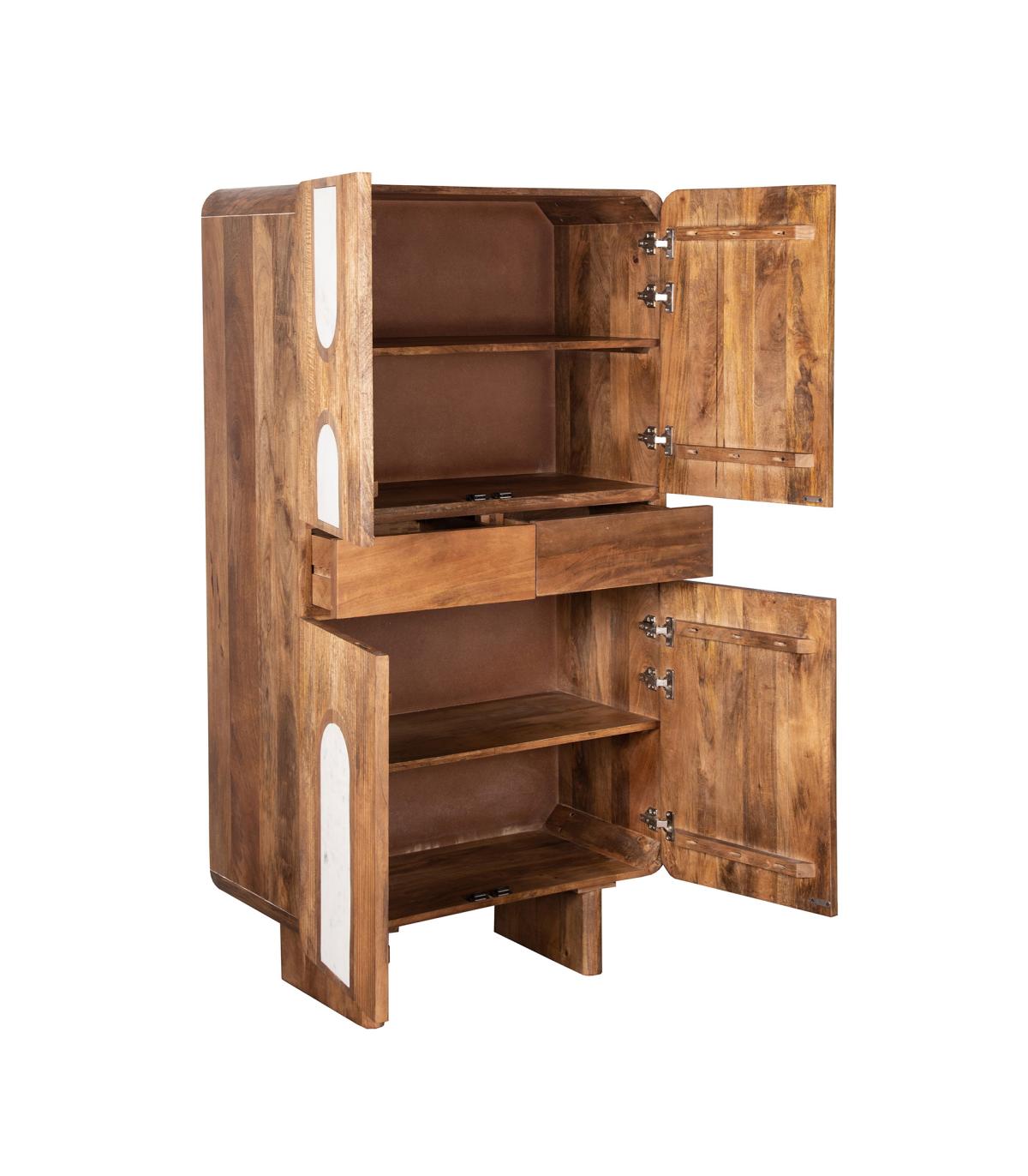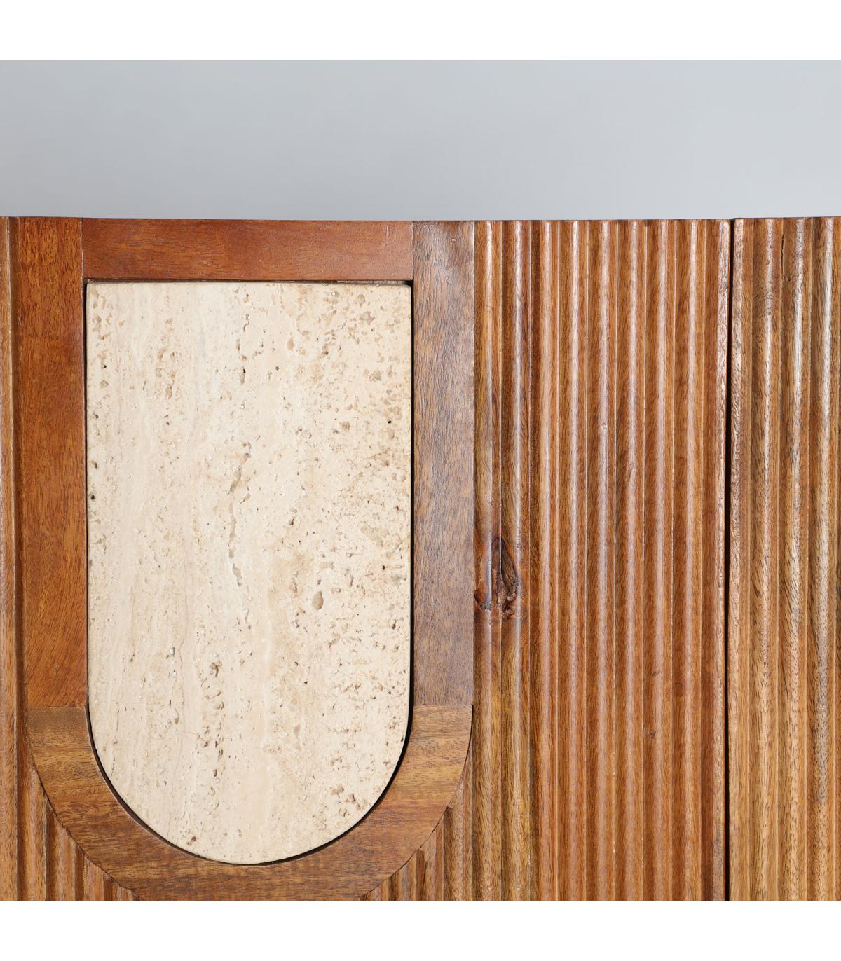 Armario claux de estilo contemporáneo, fabricado en madera de mango en color marrón, combinado con travertino en color blanco y madera dm.