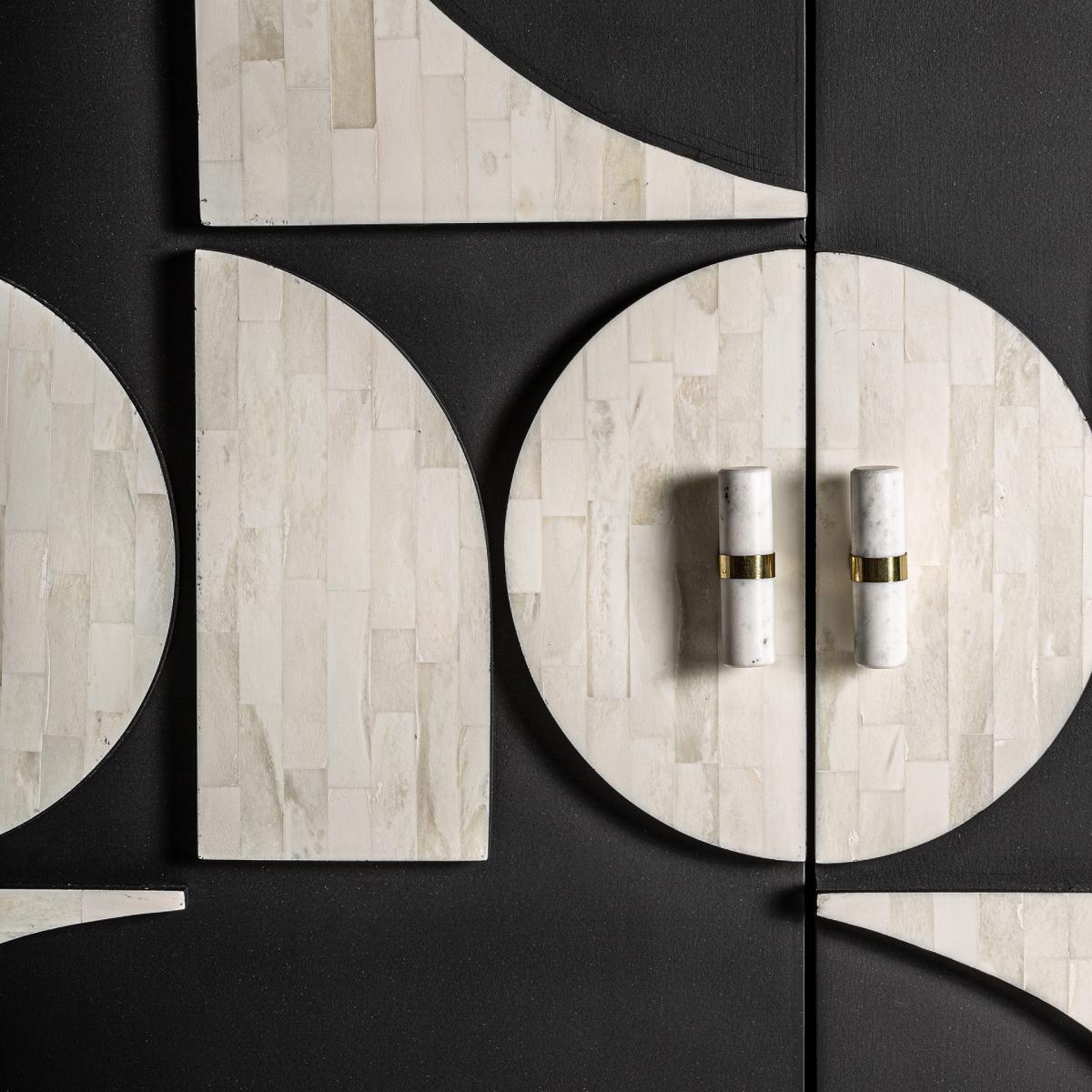 Armario athy de estilo contemporáneo fabricado en madera dm en color negro combinado con hueso en color blanco y hierro. Producto desmontable.