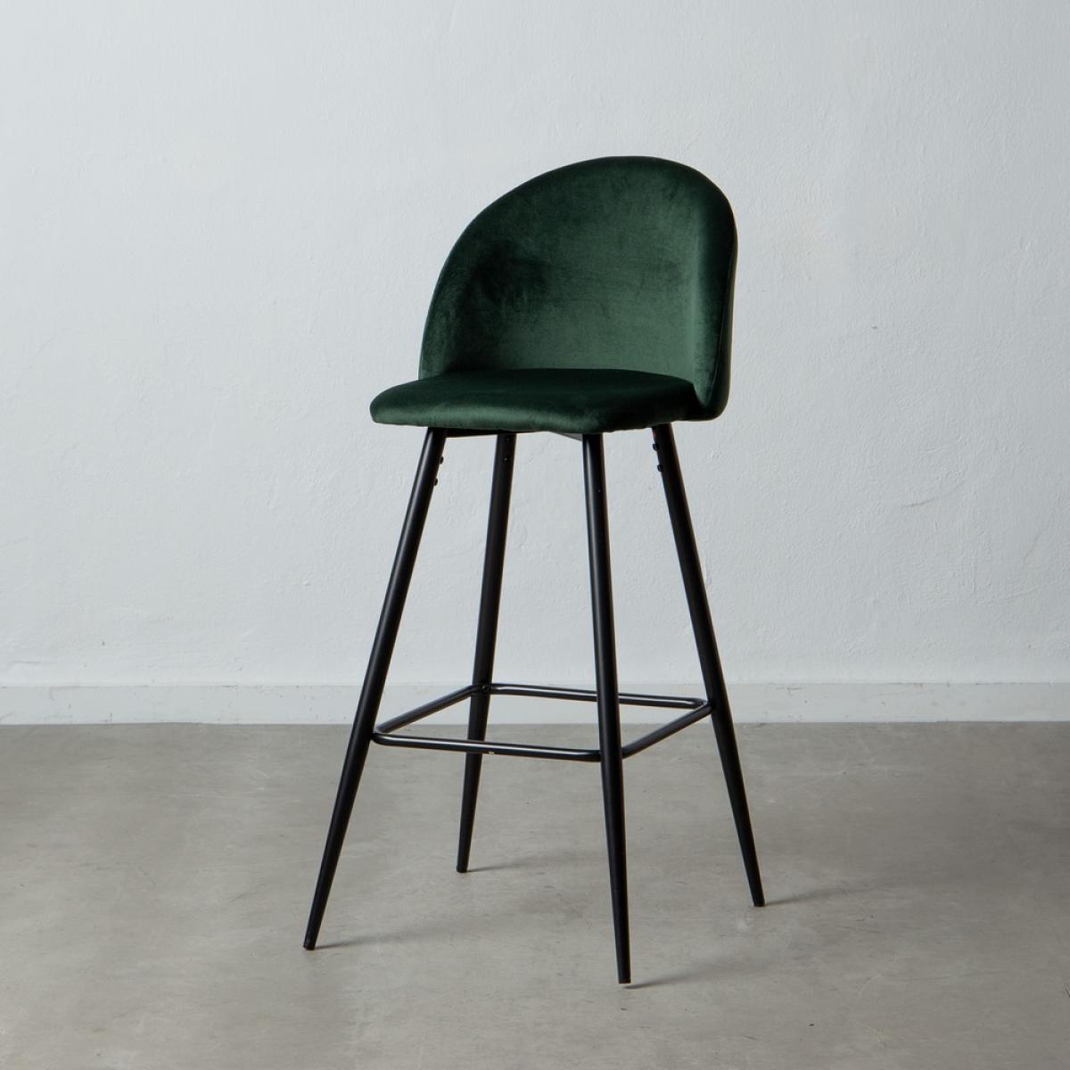 TABURETE ALTO VERDE OSCURO TEJIDO-METAL 40,20 X 48,20 X 102 Material: Tejido (100% poliéster), metal. Altura asiento: 75cm. Altura respaldo: 30,2cm. Profundidad asiento: 39,5cm. Altura patas: 71,5cm. CUMPLE LA NORMATIVA EN16139 (CATERING). Las posibles sombras o marcas en el tejido son debidas al embalaje de las piezas. Desapareciendo fácilmente con la aplicación de vapor.