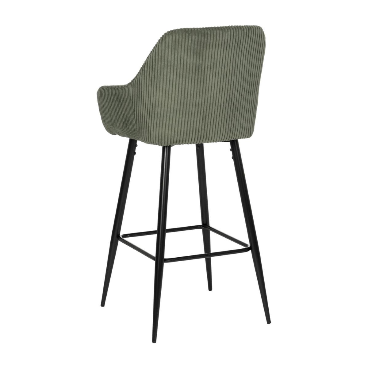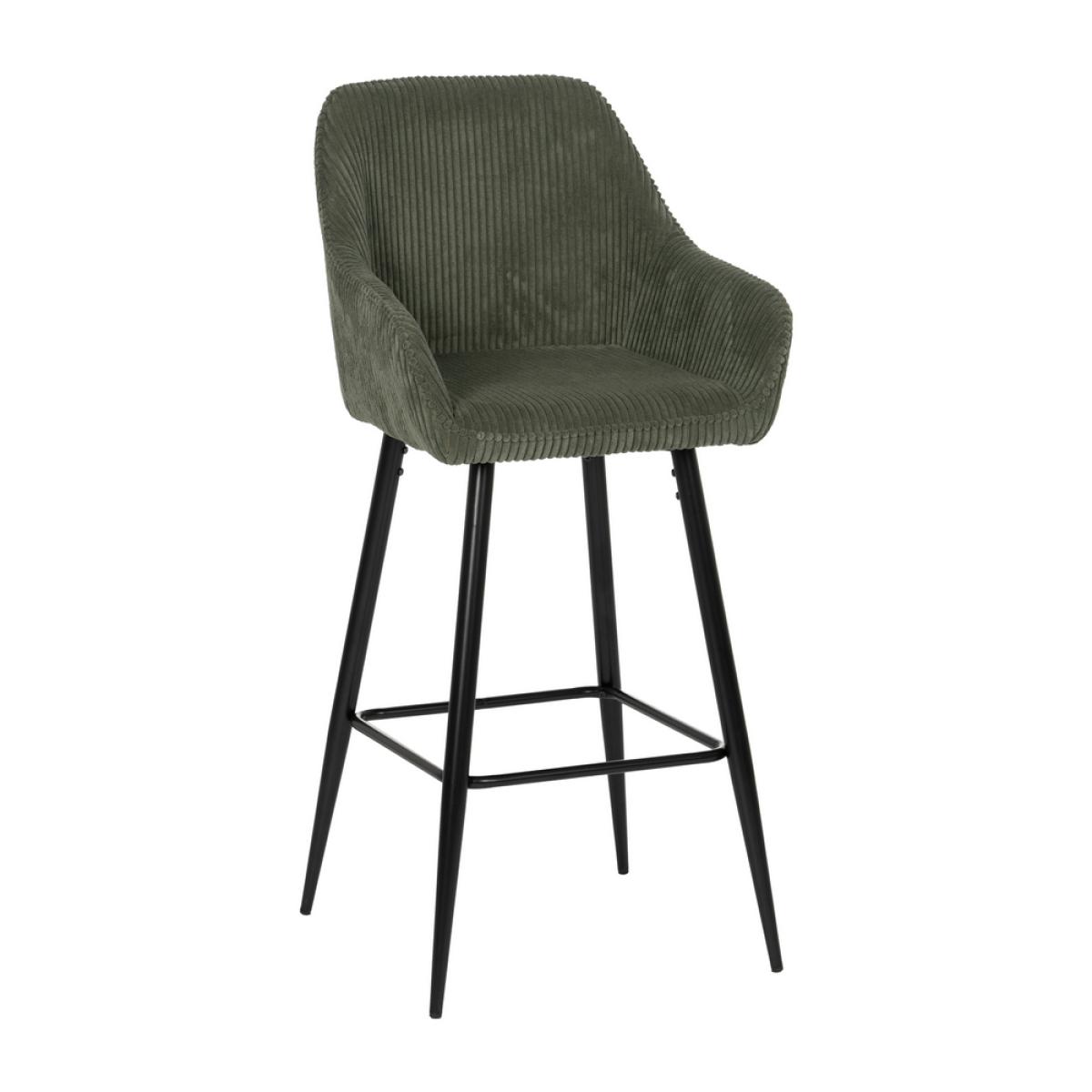 TABURETE VERDE TEJIDO-METAL CONTRACT 54 X 41,50 X 109 CM Tejido: Políester ( pana) Relleno:foam Densidad del relleno: 28kg/m3. Material de las patas: Hierro Altura del asiento:75cm Altura de las patas:70cm. Altura del respaldo: 37 cm. Peso máximo soportado:140kgs. No apilable. No necesita montaje. Cumple normativa EN16139:2013 (Catering).
