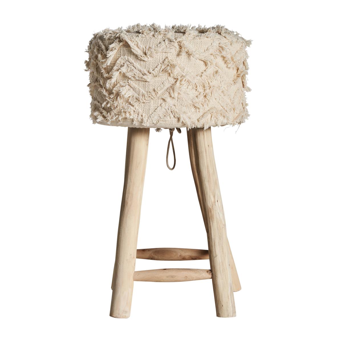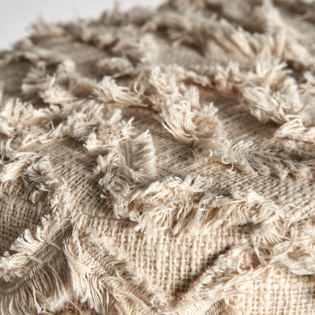 Taburete mittet de estilo boho fabricado en algodón en color crema combinado con fibra natural en color marrón claro con acabado natural. Producto desenfundable.