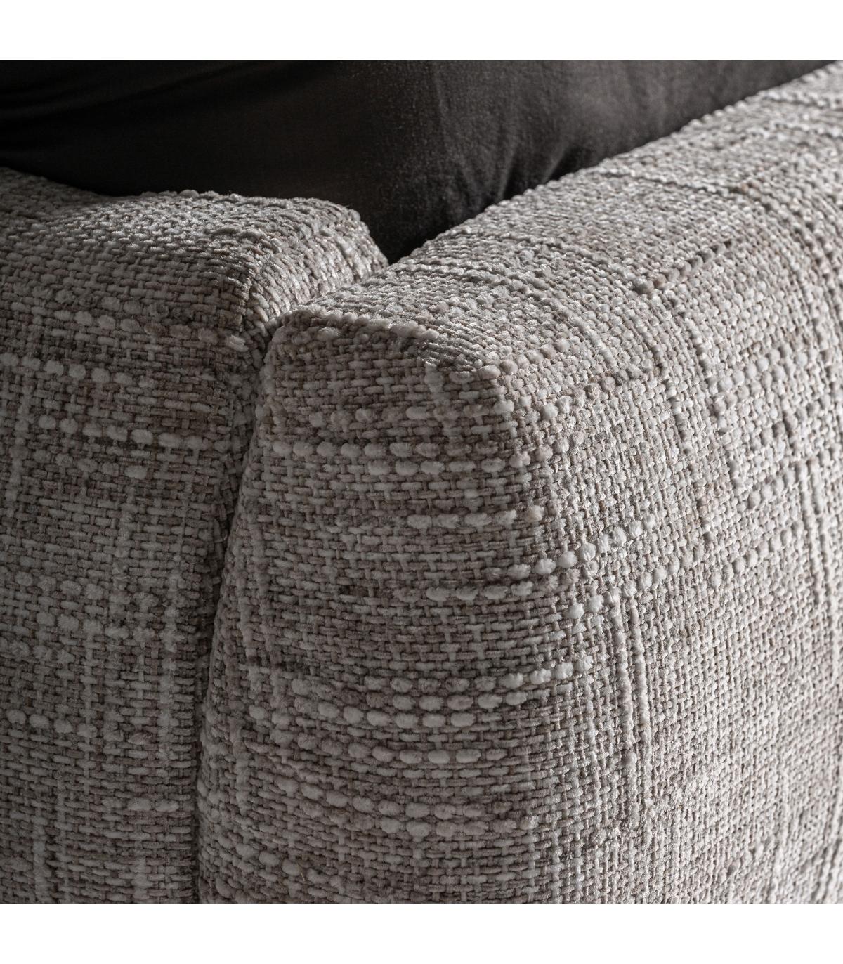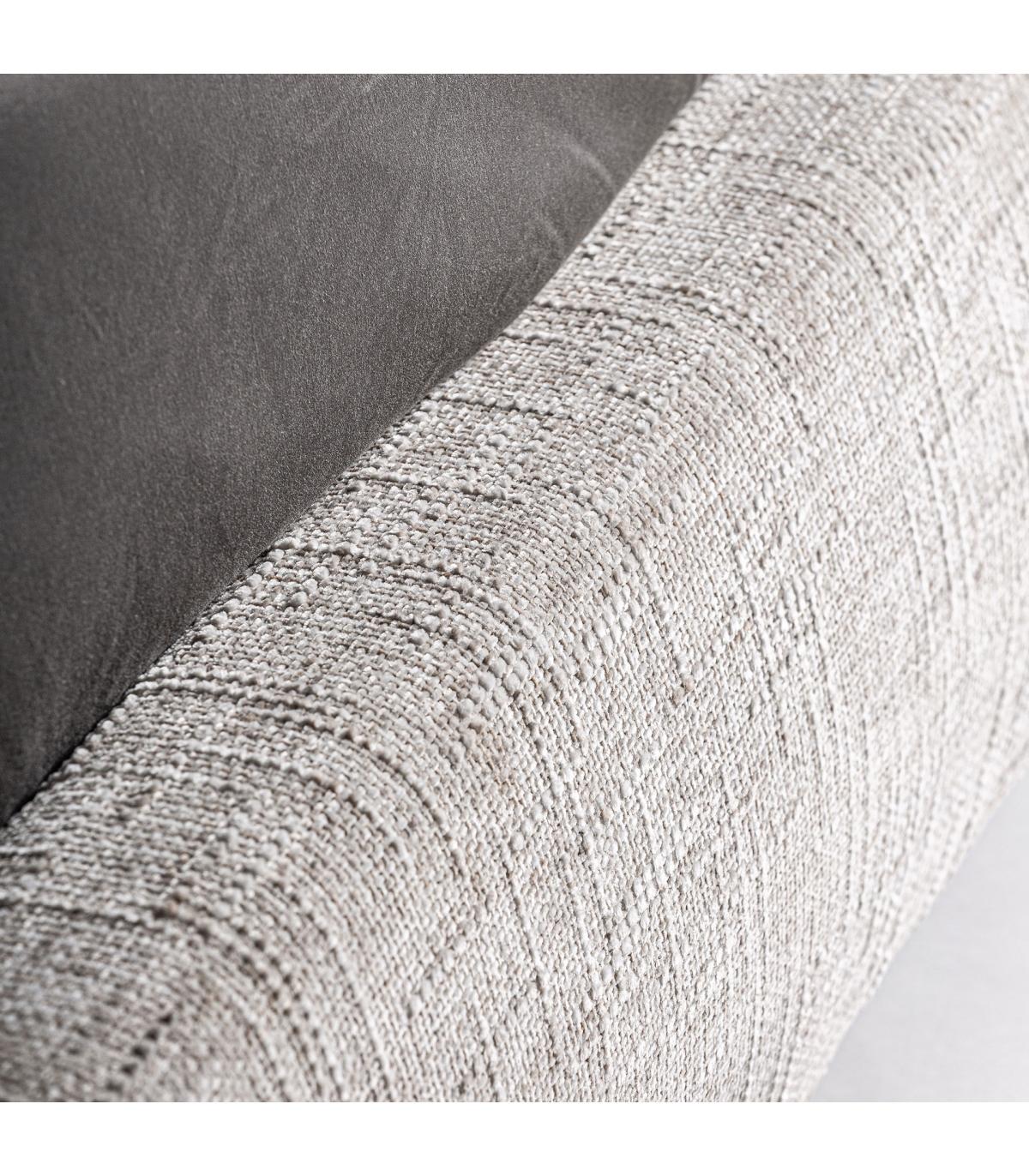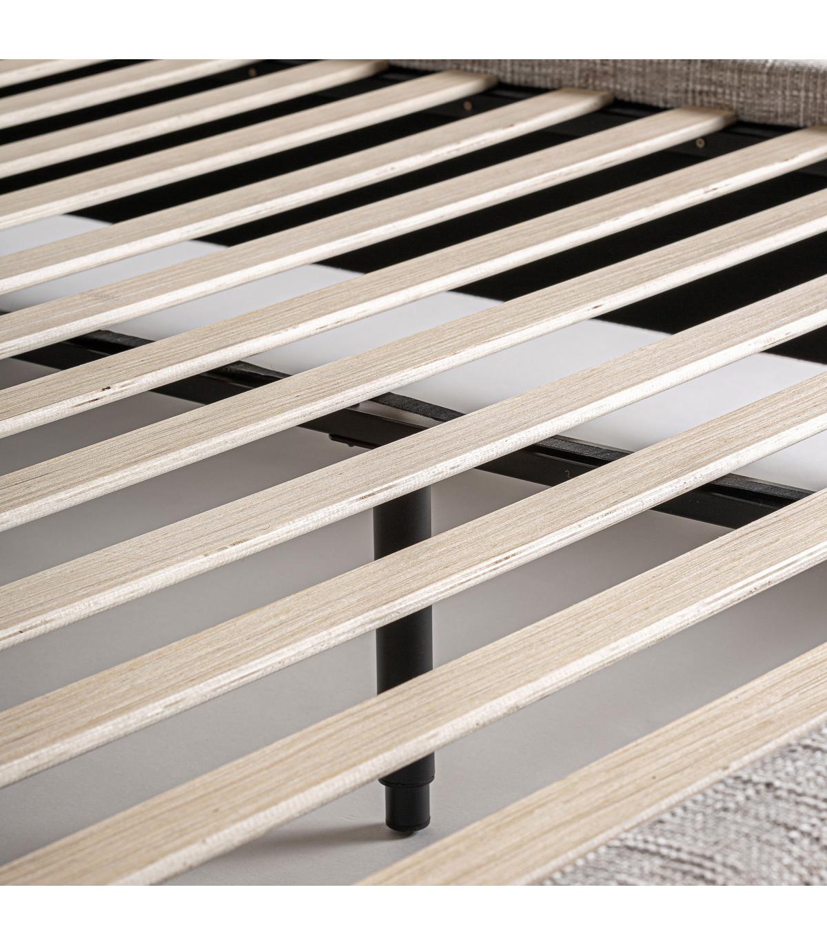 Cama Sannes de estilo contemporáneo, fabricado en poliéster en color beige, combinado con madera de pino en color marrón.