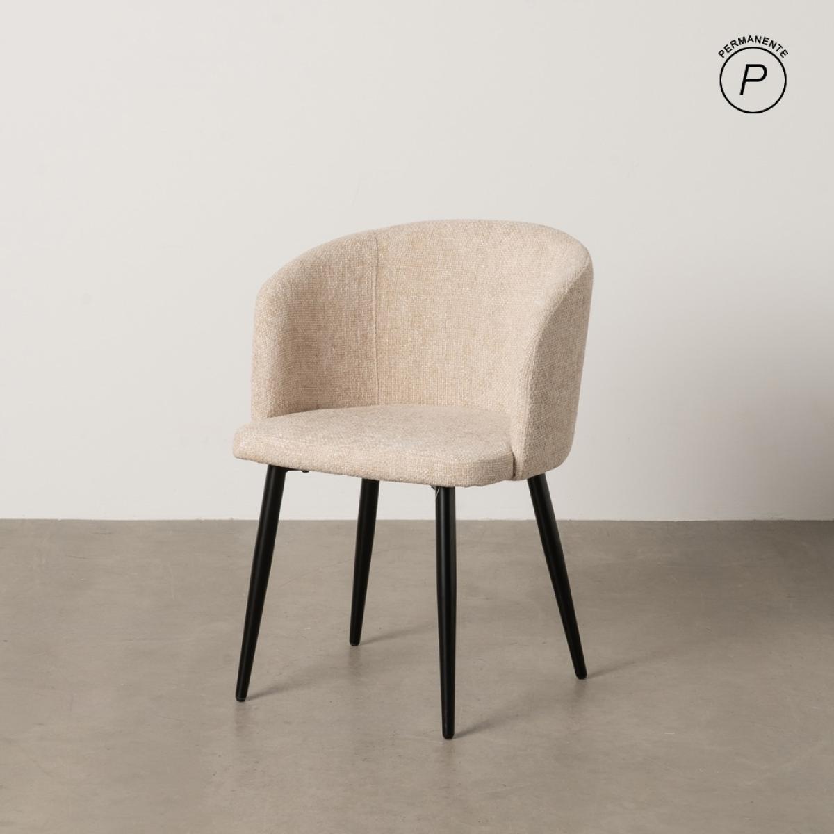 SILLA CREMA TEJIDO-METAL SALÓN 53 X 53 X 77 CM Material: tejido (100% poliéster), metal. Relleno: foam, densidad 24kg/m3. Altura asiento: 46cm. Ancho asiento: 44cm. Profundidad asiento: 43,5cm. Altura respaldo: 32cm. Peso máximo soportado: 120kgs. Cumple la normativa EN16139. No apilable.