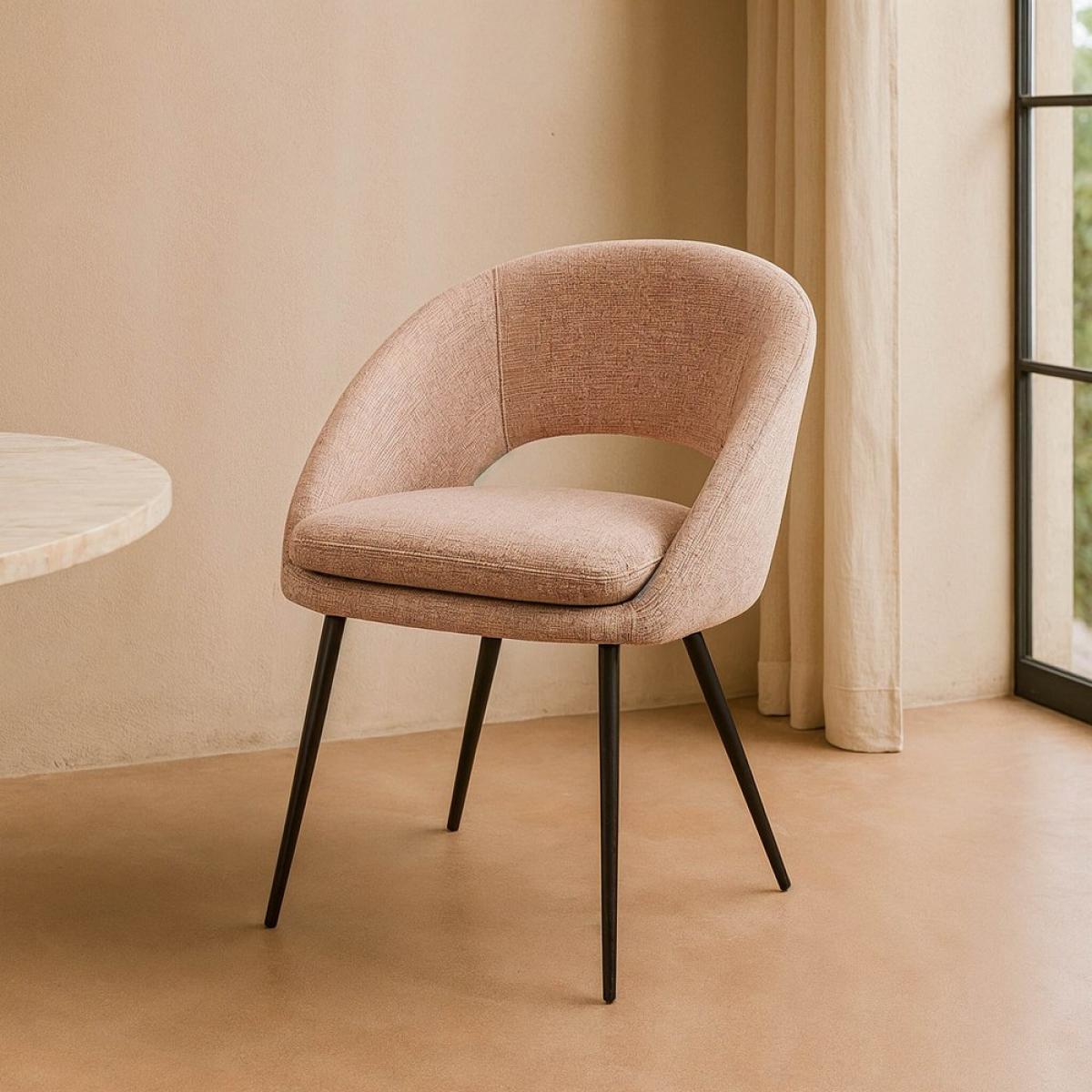 SILLA ROSA TEJIDO-METAL CONTRACT 67,50 X 47 X 79,50 CM Material: tejido - metal Patas: hierro negro Tejido: 100% poliéster Gramaje: 320gr/m2 Altura asiento: 51.5cm. Altura respaldo: 34cm. Ancho asiento: 46cm. Profundo asiento: 48cm. Patas para montar. Cojín desenfundable con cremallera. Cumple normativa EN16139:2013