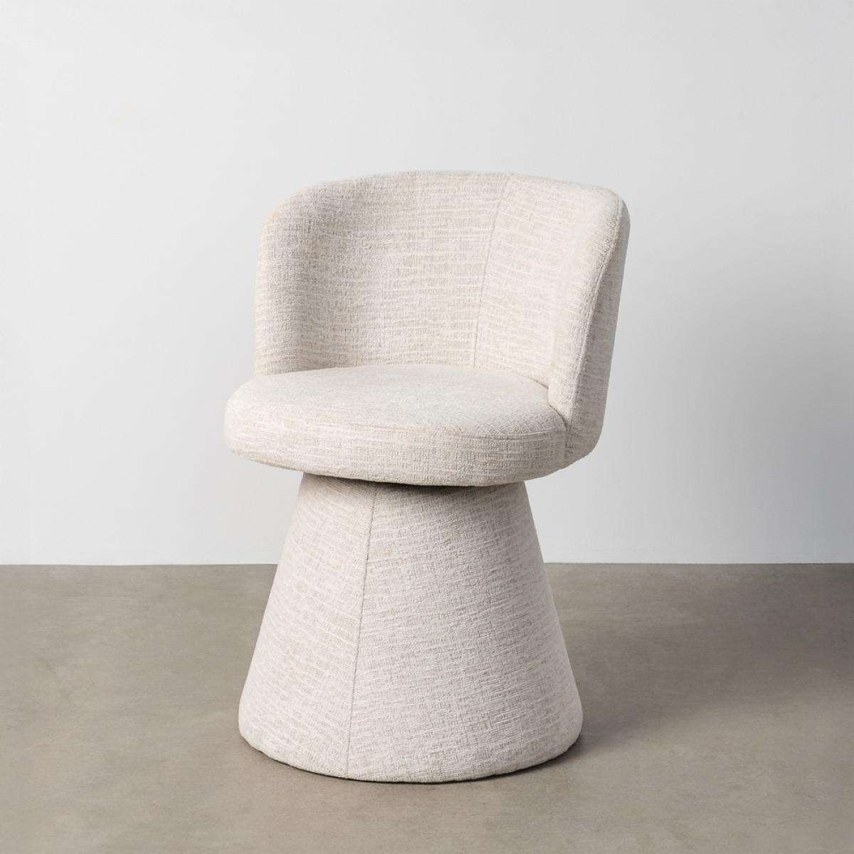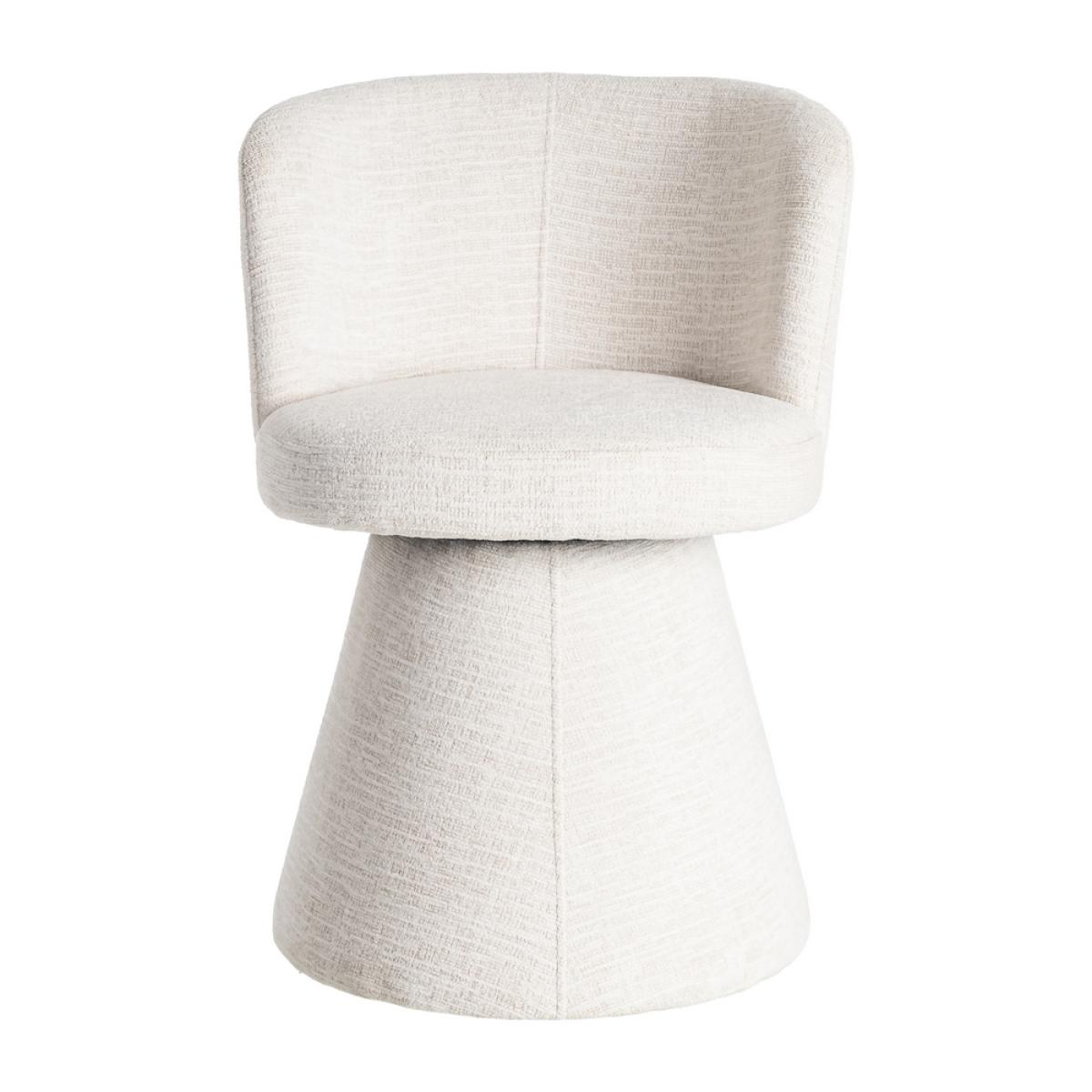 SILLA CREMA DM-TEJIDO SALÓN 55 X 50 X 77 CM Material: tejido Pata: tejido Tejido: 100% poliéster Gramaje: 320gr/m2 Altura asiento: 51cm. Altura respaldo: 30cm. Ancho asiento: 50cm. Profundo asiento: 44cm. Silla retorno automático. Cumple normativa EN12520:2024
