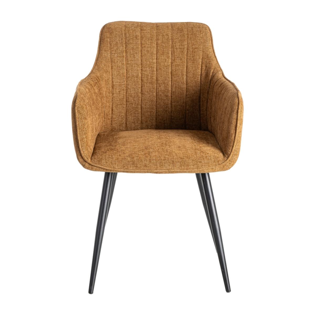 SILLA MARRÓN TEJIDO-METAL SALÓN 55 X 58,50 X 84 CM Material: tejido, metal. Altura asiento: 47cm. Ancho asiento: 40cm. Profundidad asiento: 46cm. Altura respaldo: 40cm. Altura reposabrazos: 20cm (65cm desde el suelo). No apilable. Cuample la normativa EN16139 (catering).