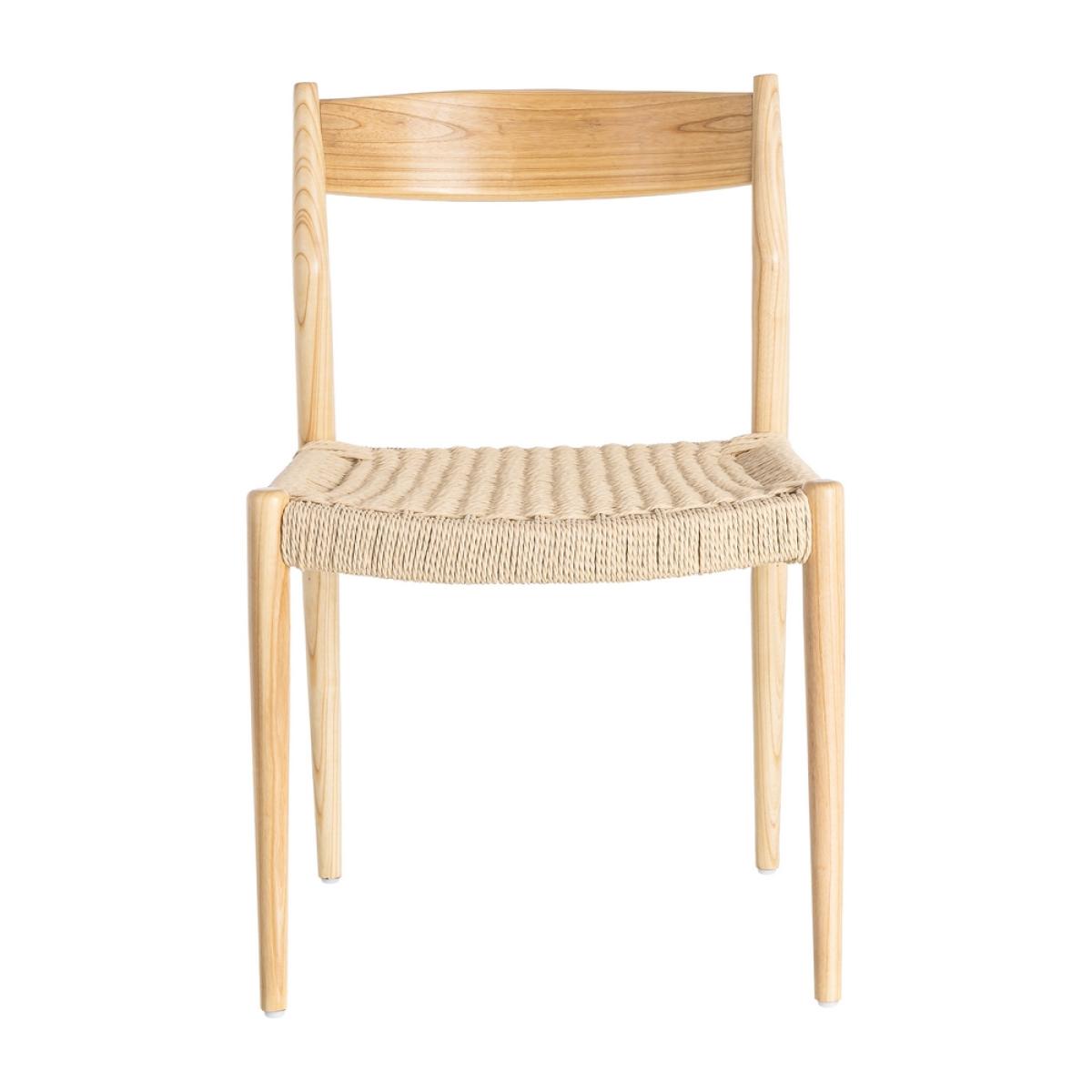 SILLA NATURAL-BEIGE MADERA 53 X 55 X 82 CM Material: madera de fresno - cuerda de papel. Altura asiento: 45cm. Altura respaldo: 36cm. No precisa montaje. Cumple normativa: EN12520
