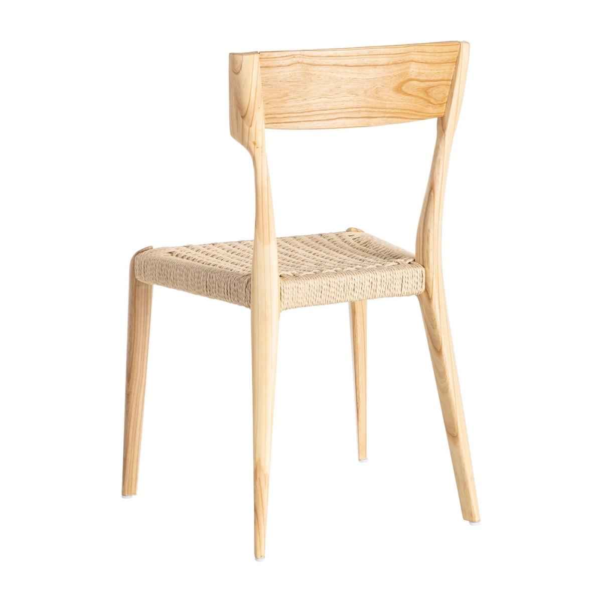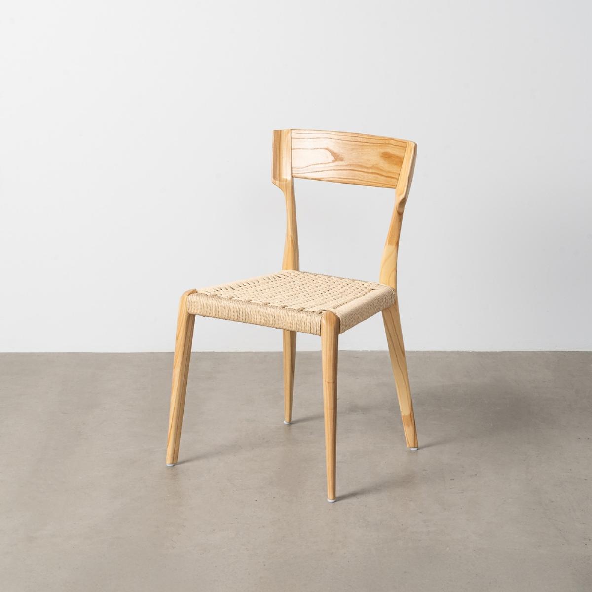 SILLA NATURAL-BEIGE MADERA 46 X 50 X 81 CM Material: madera de fresno - cuerda de papel. Altura asiento: 45cm. Altura respaldo: 38cm. No precisa montaje. Cumple normativa: EN12520