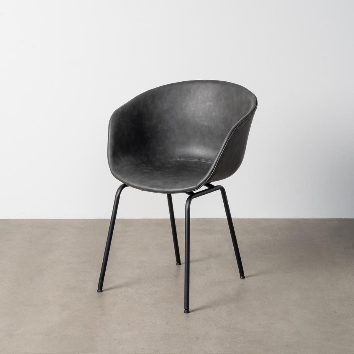 SILLA NEGRO METAL / SIMIL PIEL 59 X 50,50 X 81,50 CM ESTRUCTURA DE POLIPROPILENO. PATAS DE METAL. TEJIDO DE PU. RELLENO:ESPUMA Altura asiento:47 cm. Ancho asiento: 36cm. Profundidad asiento:39,5 cm. Altura respaldo: 36cm. Altura del reposabrazos desde el asiento: 25cm. Altura del reposabrazos desde el suelo:74cm Distancia entre las patas: 40cm. REQUIERE MONTAJE. CUMPLE CON LA NORMATIVA 16139:2013
