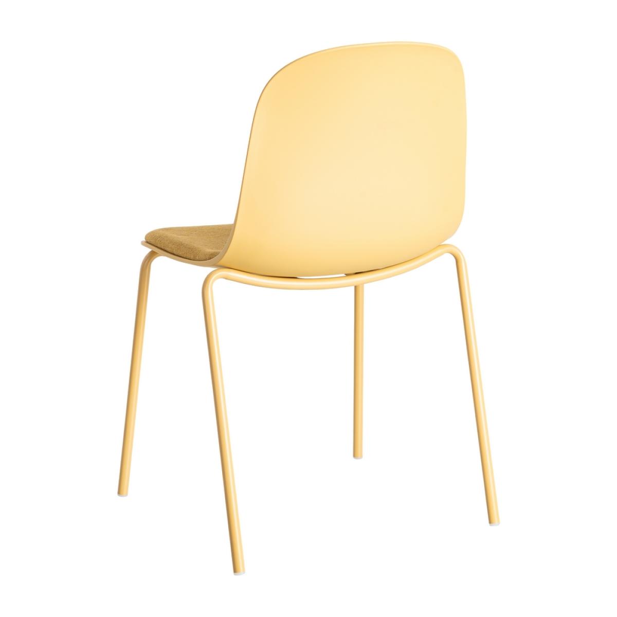 SILLA AMARILLO PP-METAL INTERIOR 46 X 51 X 85 CM Altura asientos: 49cm. Ancho asiento: 45cm. Profundidad asiento: 54cm. Altura respaldo: 38cm. Material pata: acero. Material asiento: 100% poliéster. Cumple la normativa 16139:2013